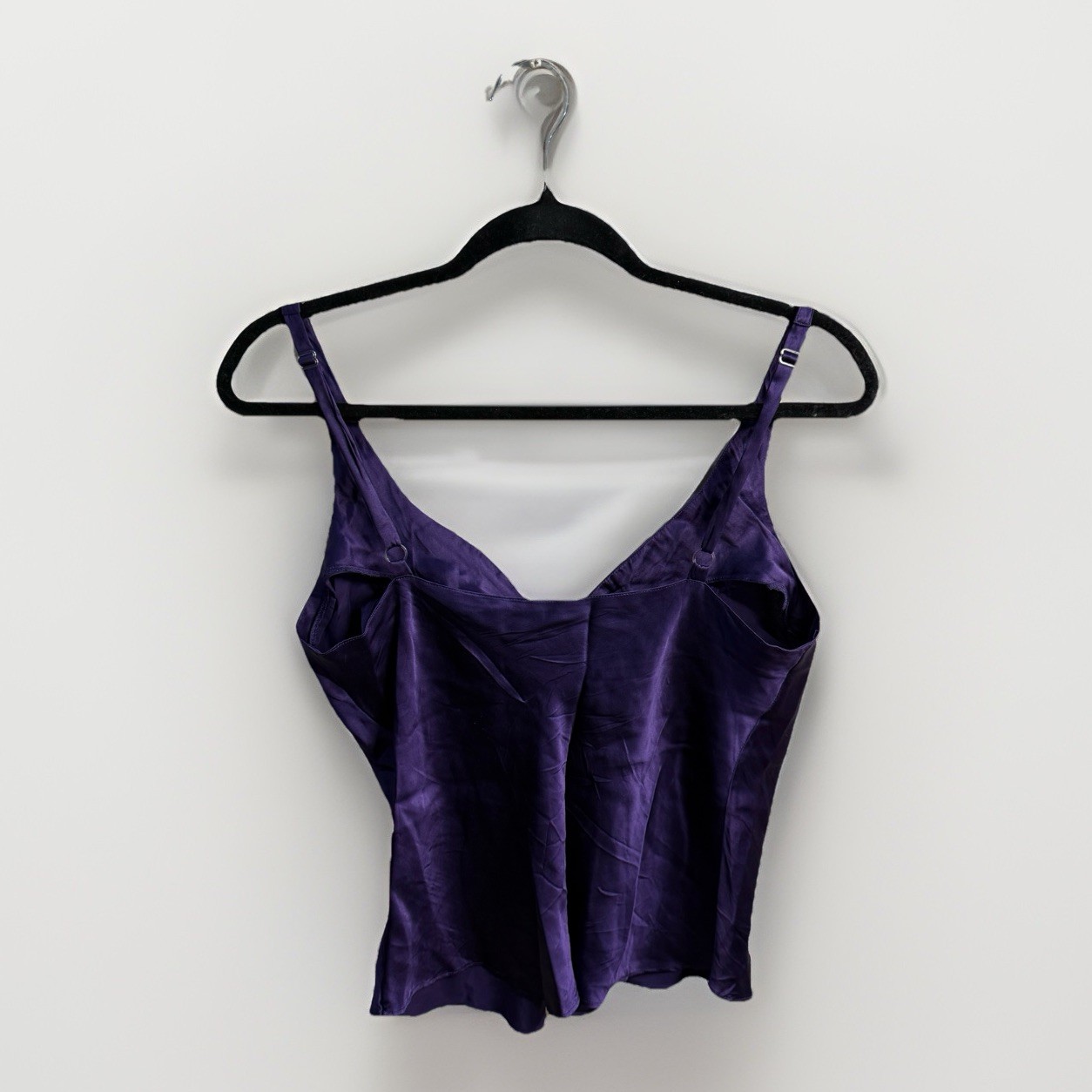 как выглядит VTG Victorias Secret Gold Label 100 SILK Eggplant Embroidered Camisole Sz S фото