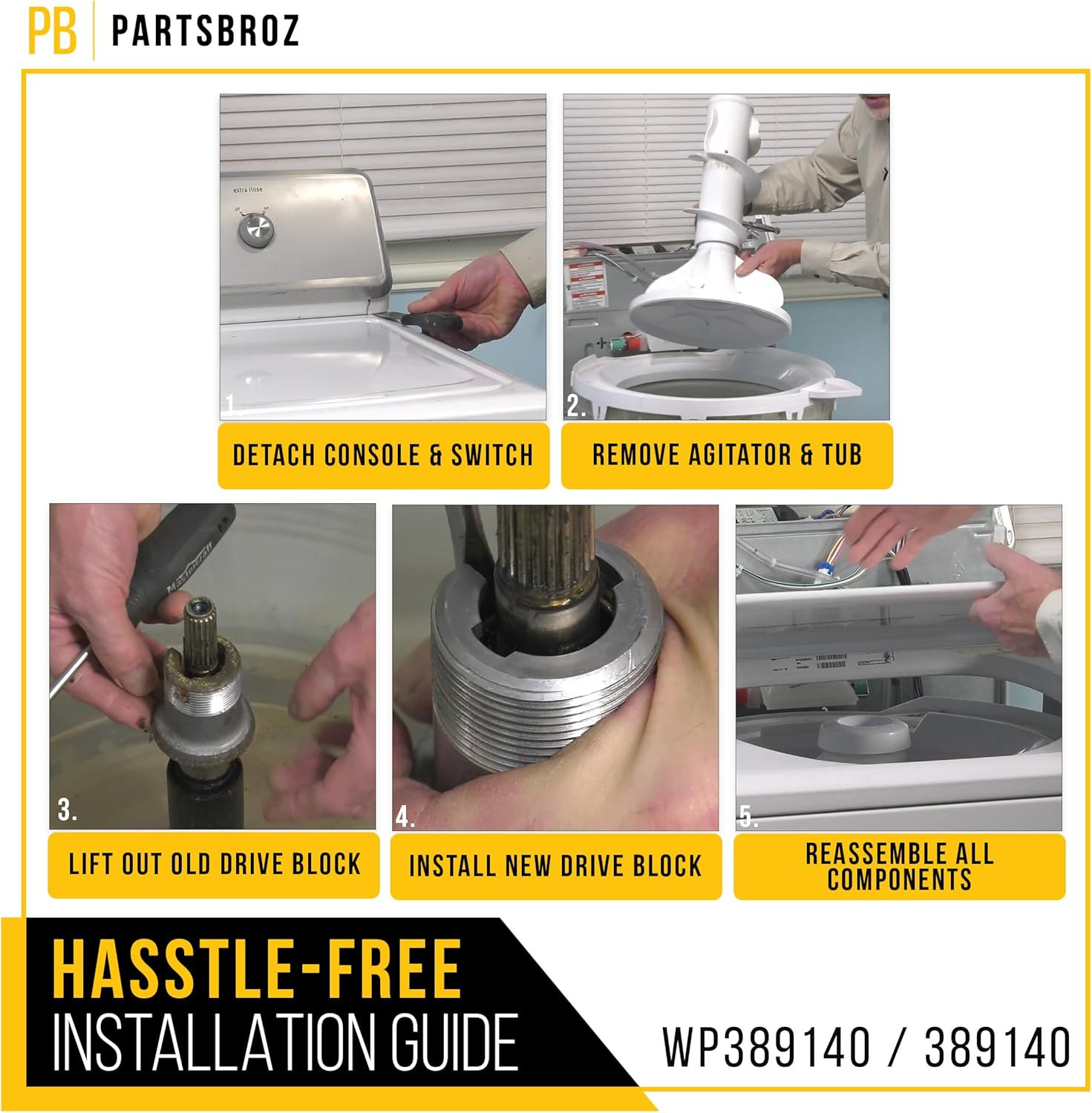 WP389140 Washer Drive Block Kit Compatible with Whirlpool Kenmore Roper 389140