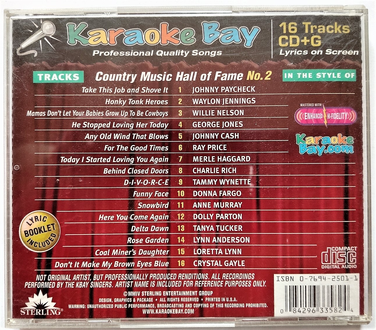 Karaoke CD Country Hall Of Fame Music No.2