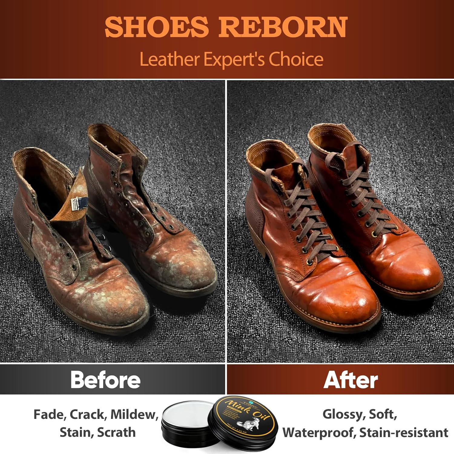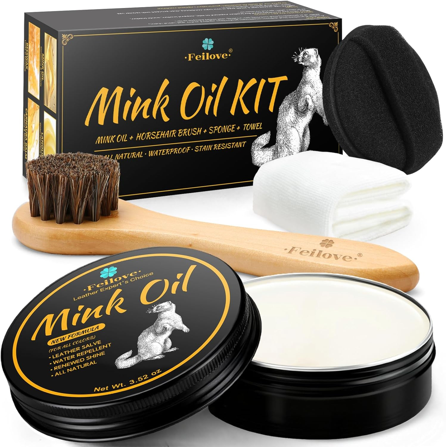4-In-1 Mink Oil Leather Conditioner and Cleaner 3.52 Oz - Premium Waterproof For