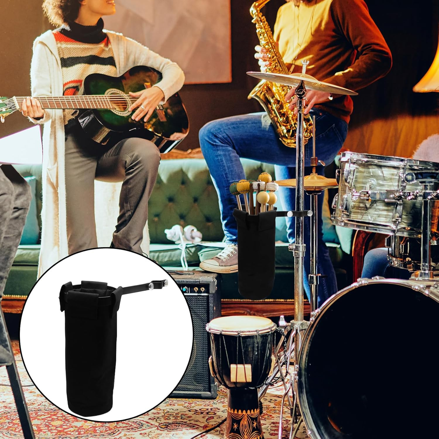 как выглядит Drum Stick Holder for Drum Set, Removable Nylon Drumstick Bag Holder with Clamp- фото