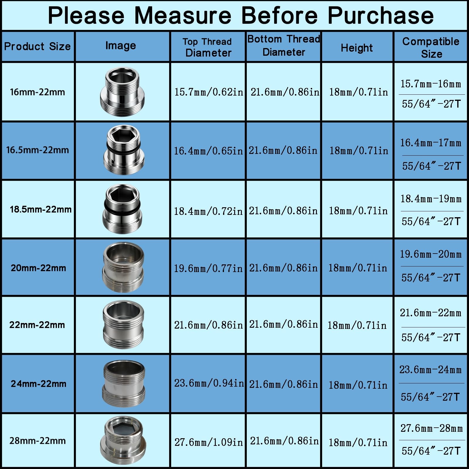 XNTONG 7 Pieces Faucet 16mm, 16.5mm, 18.5mm, 20mm, 22mm, 24mm, 28mm, Silver