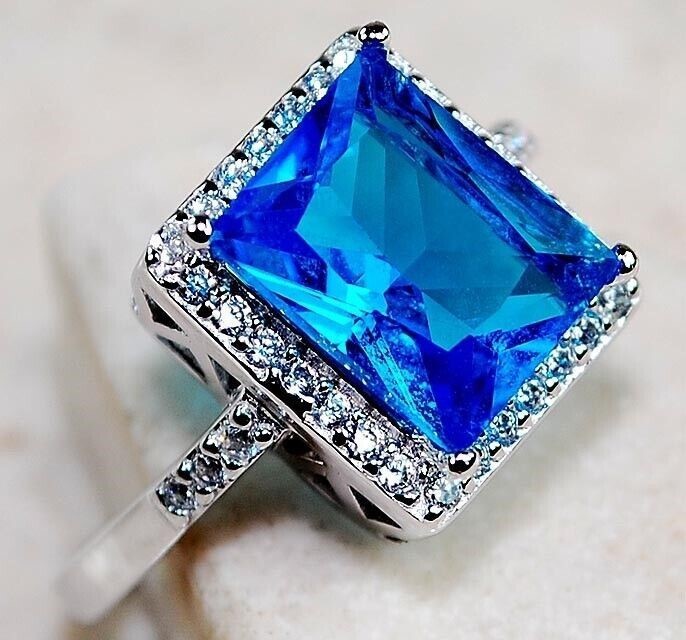 4CT Blue Topaz Topaz 925 Solid Sterling Silver Ring Sz 8 UB2-6