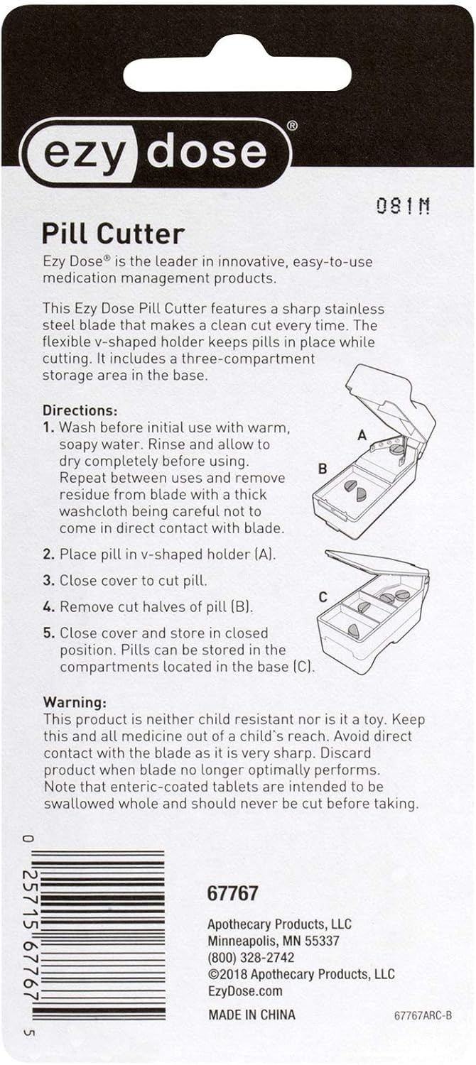 Pill Cutter and Splitter, Cuts Pills, Vitamins, Tablets, Stainless Steel Blade,