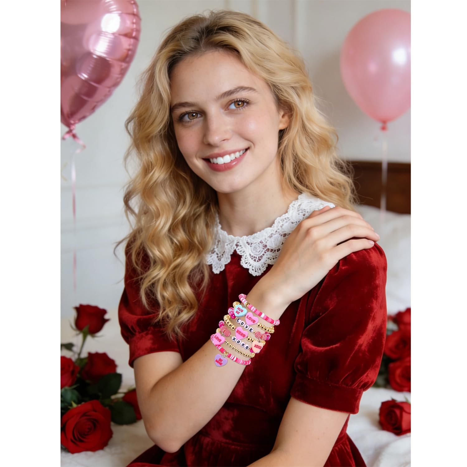 как выглядит BVGA Beaded Heishi Hot Pink Bracelet Stackable Valentine
