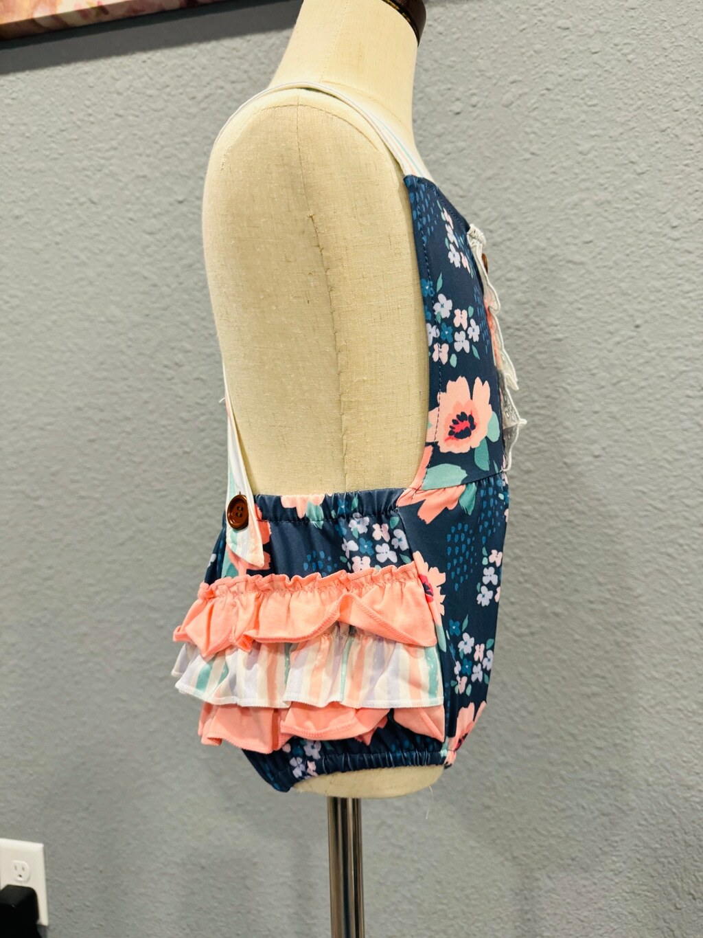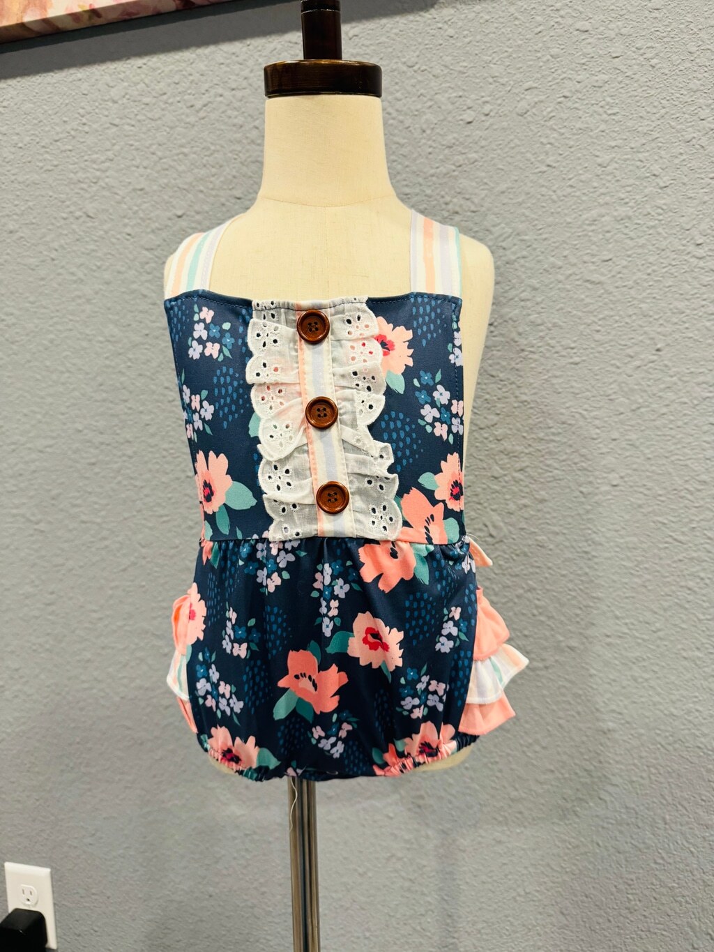как выглядит Wellington Designs Navy Pink Bubble Romper, Sz 18/24 NWT фото