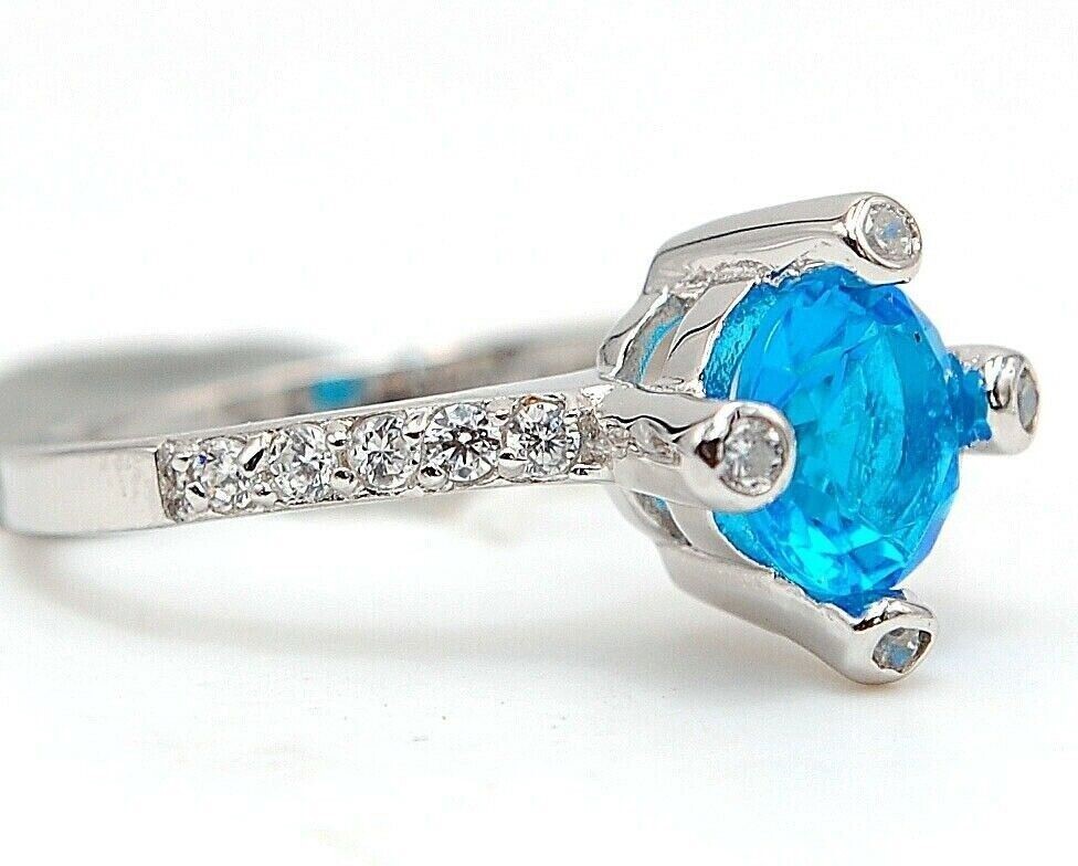 2CT Blue Topaz Topaz 925 Solid Sterling Silver Ring Jewelry Sz 6 UB3-1