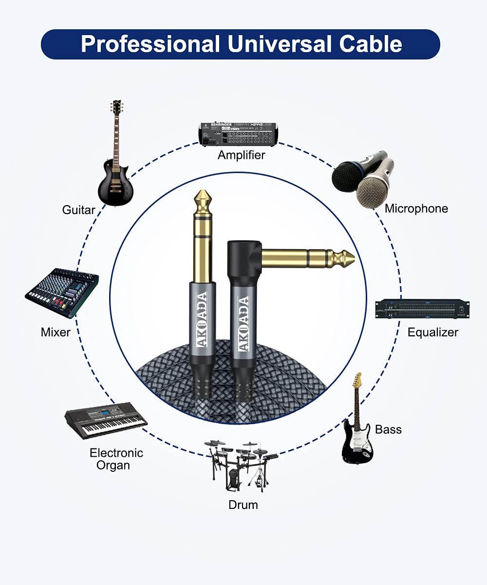 1/4 Inch TRS Instrument Cable 10Ft 2Pack Right Angle 6.35Mm Male Jack.......