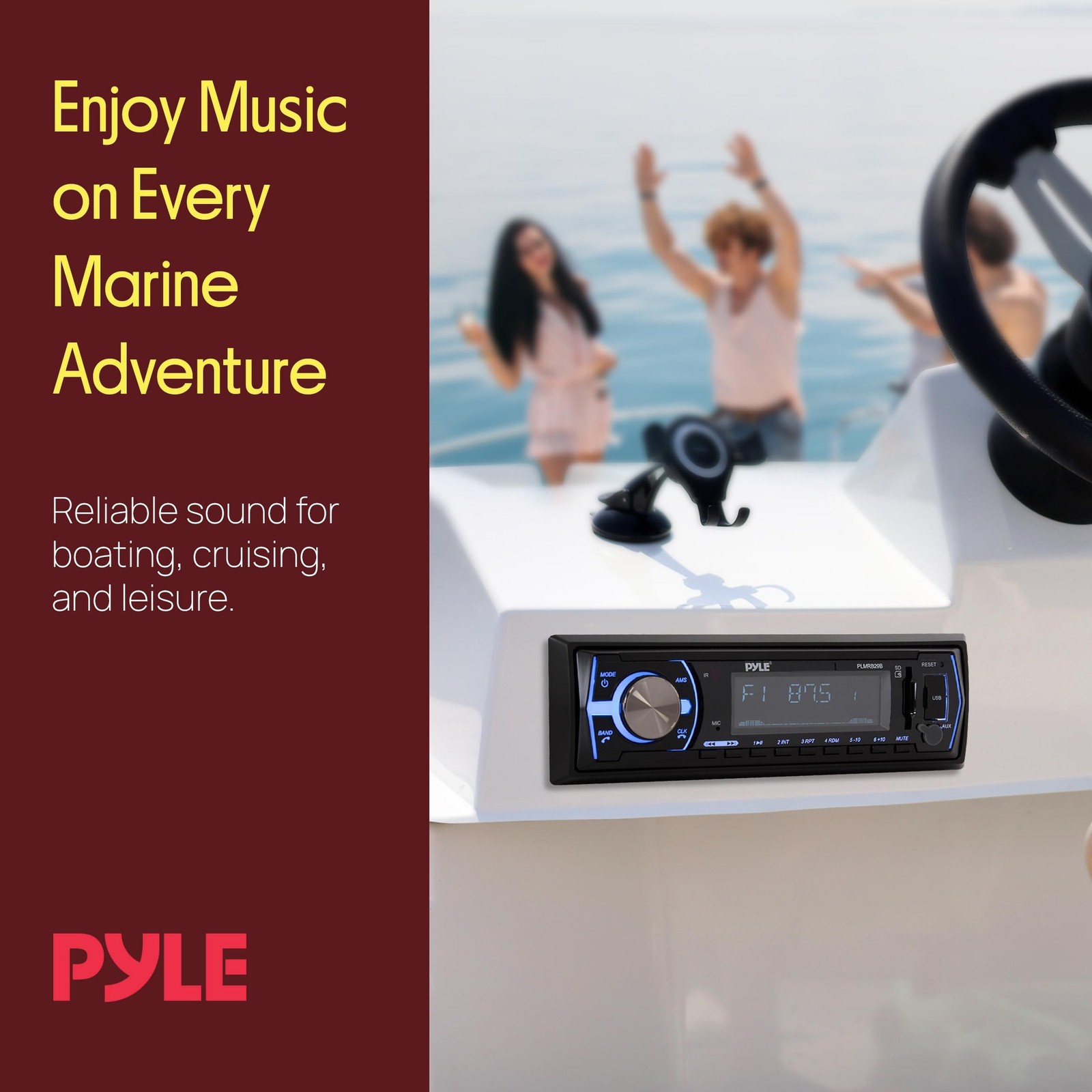 как выглядит 12V Boat Stereo Radio Bluetooth In Dash Receiver Single DIN USB SD AM FM LCD фото