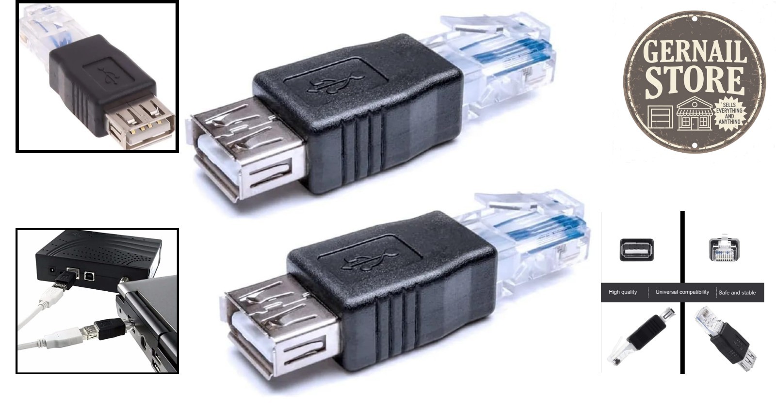 2 Pack Ethernet to USB Adapter - RJ45 Male to USB Female for ADSL Modem
