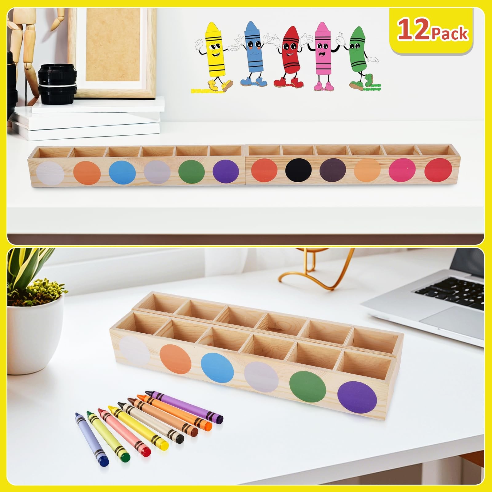 Crayon Organizer for Classroom, 12 Compartment Colored Crayon Holder Organize...