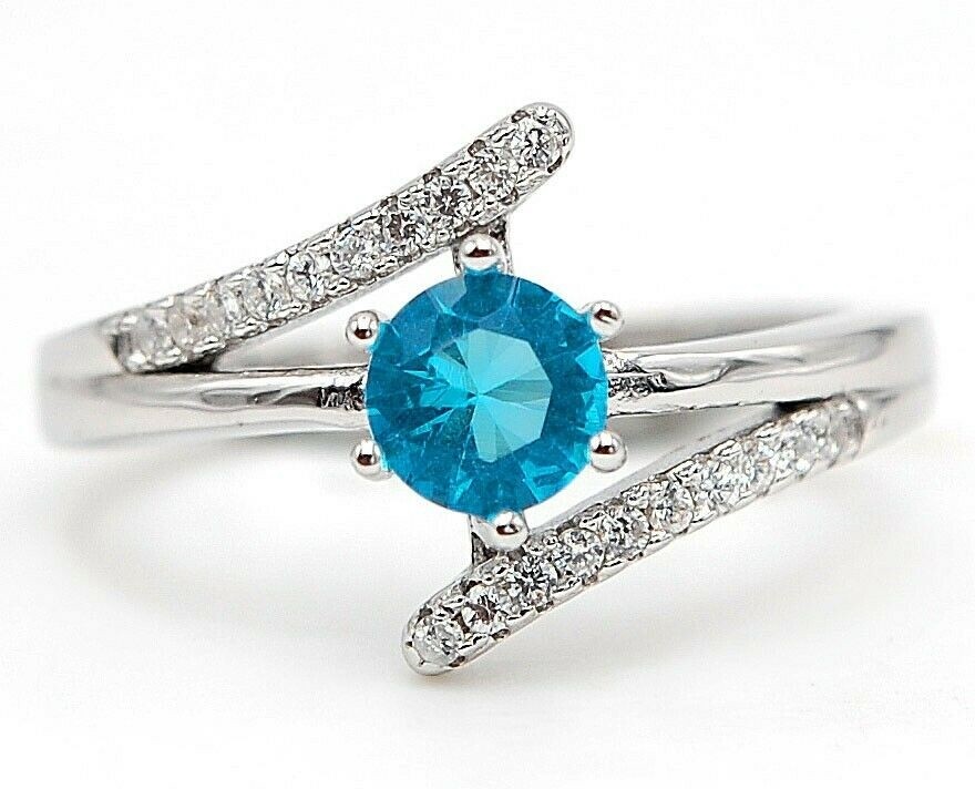 1CT Blue Topaz Topaz 925 Solid Sterling Silver Ring Jewelry Sz 6 UB3-9