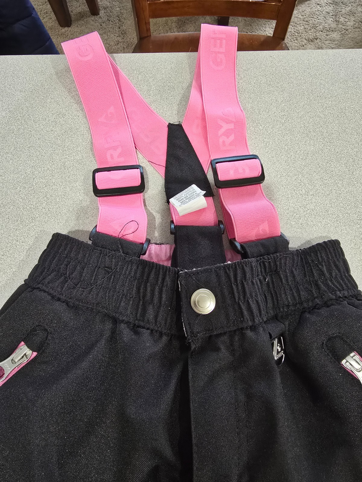 GERRY Snow Pants Insulated Ski Bibs Removable Suspenders Black Pink Size XS 5/6