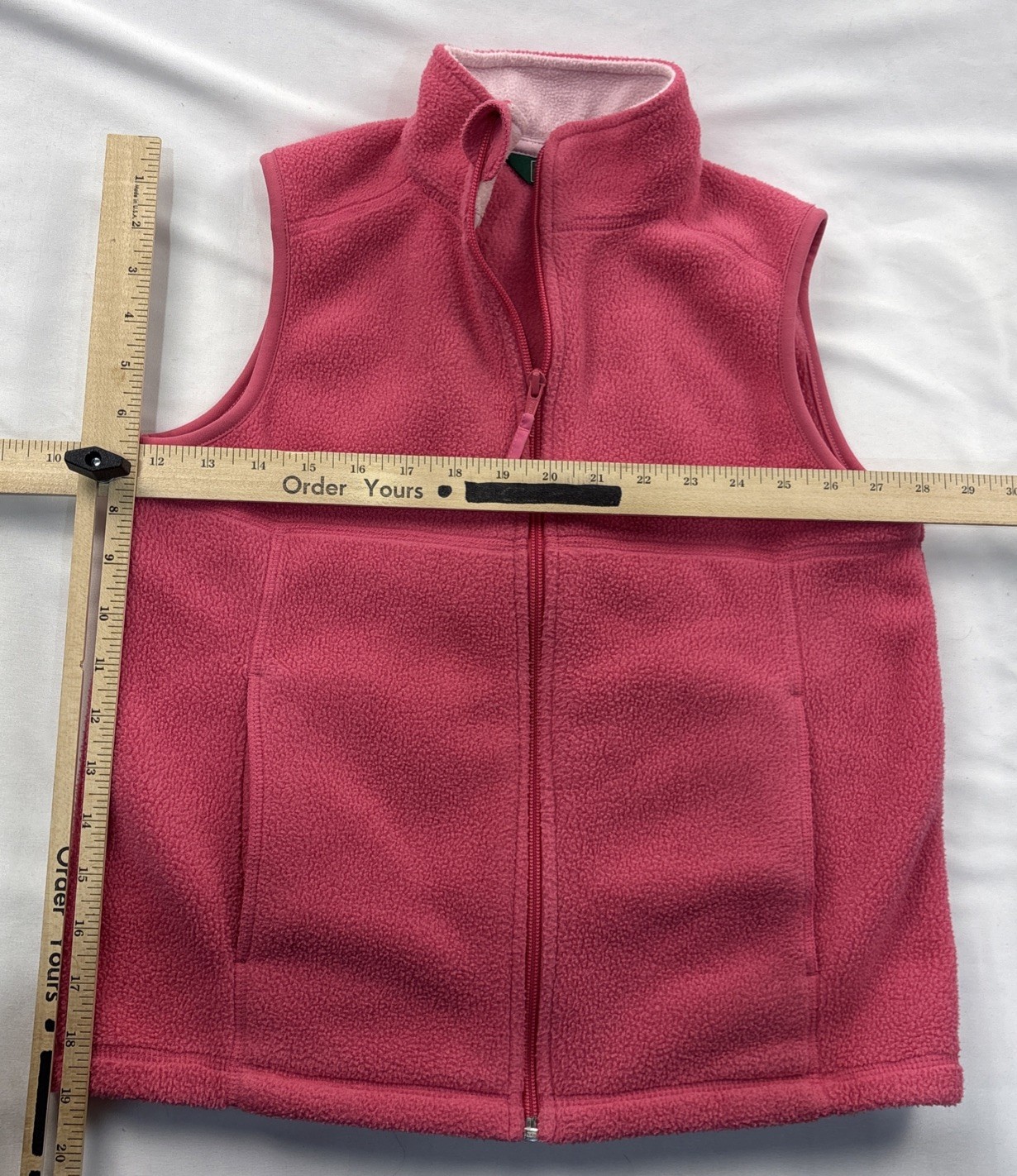 как выглядит L.L. Bean Full Zip Fleece Vest Girls Size: M 10/12 Pink Mock Neck Pockets. фото
