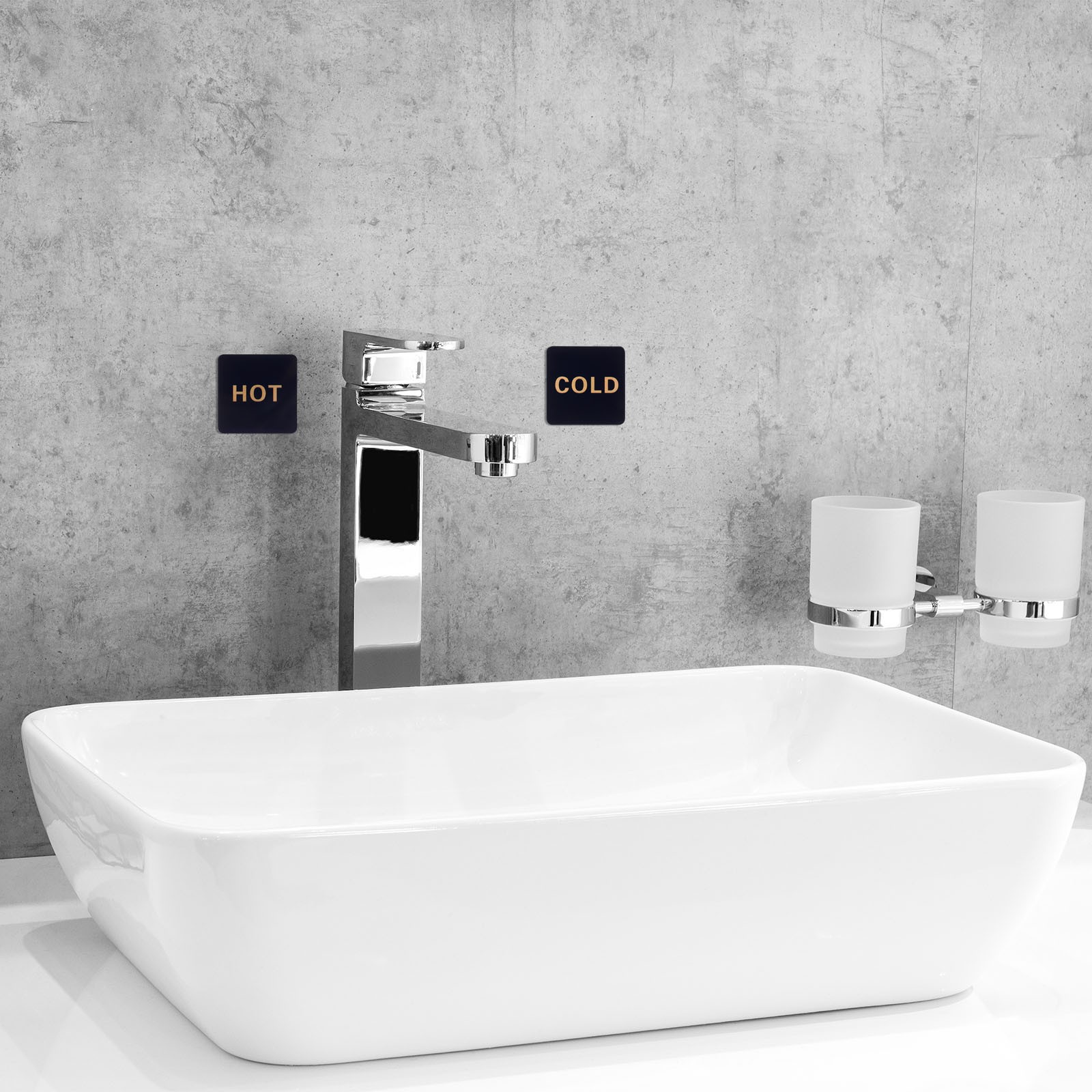 4Pcs Self Stick Hot/Cold Water Label Acrylic Square Sticker Signs Marker Black