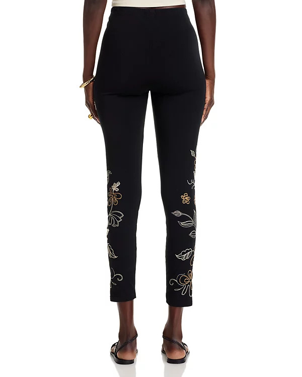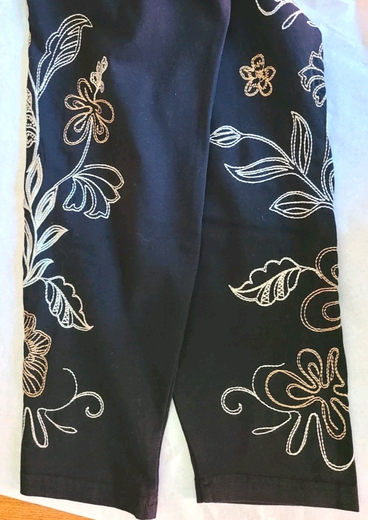 как выглядит NWT JOHNNY WAS SZ XS ADELAIDE Stretch EMBROIDERED LEGGINGS BLACK Cotton pants фото