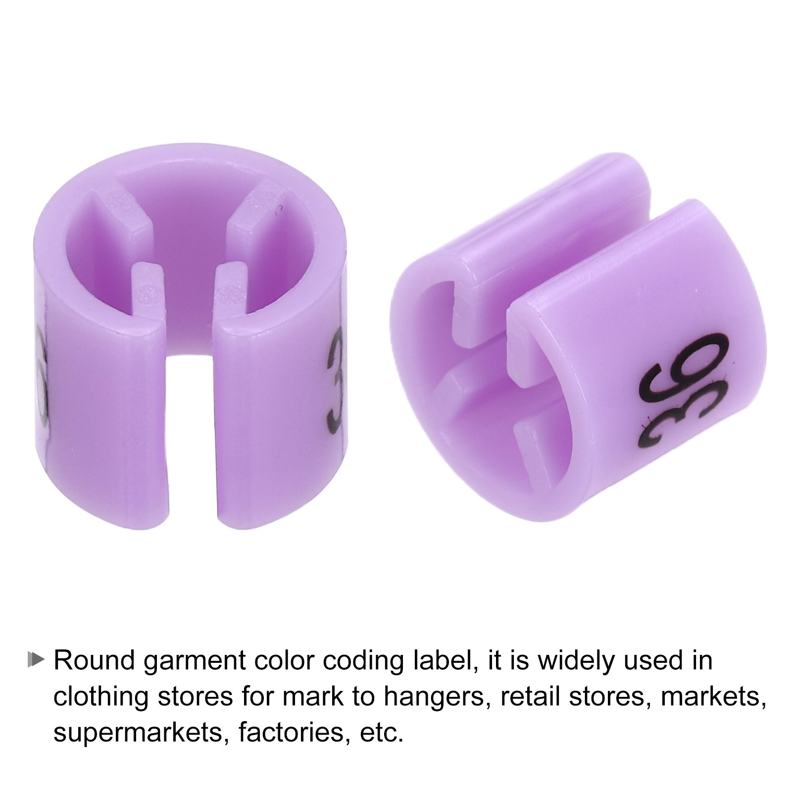 100 Pack Clothes Hanger Marker Number 36 Size Tag Fit 3mm Rod Purple