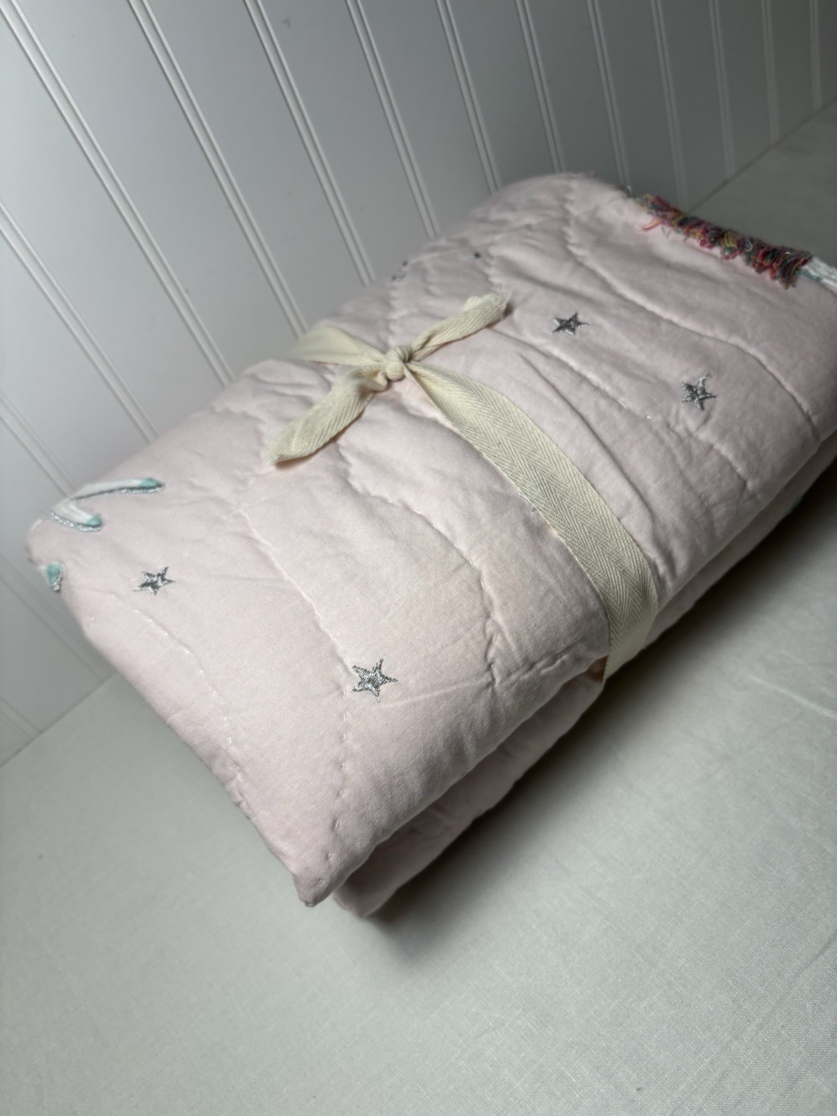 как выглядит Pottery Barn Kids Rainbow Unicorn Toddler Quilt 36 x 50  Read фото