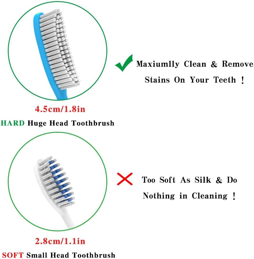 Extra Hard Firm Toothbrush Large Long Head Whitening Teeth Pack of 4