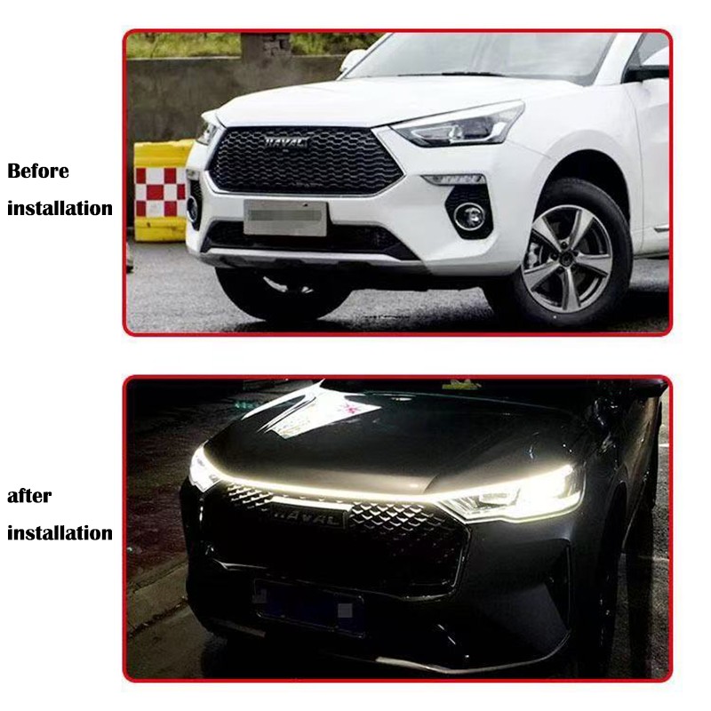 как выглядит RSTOB 1.5M Car Hood LED Strip DRL Dynamic Scan Start-up Guide Tube Universal фото