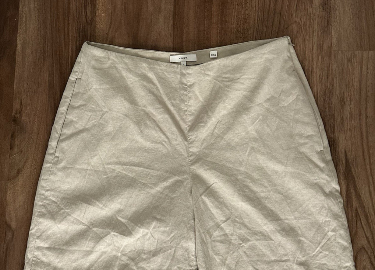 Vince Linen Blend Wide Leg Crop Pants Side Zip Beige Career Casual Women's 8