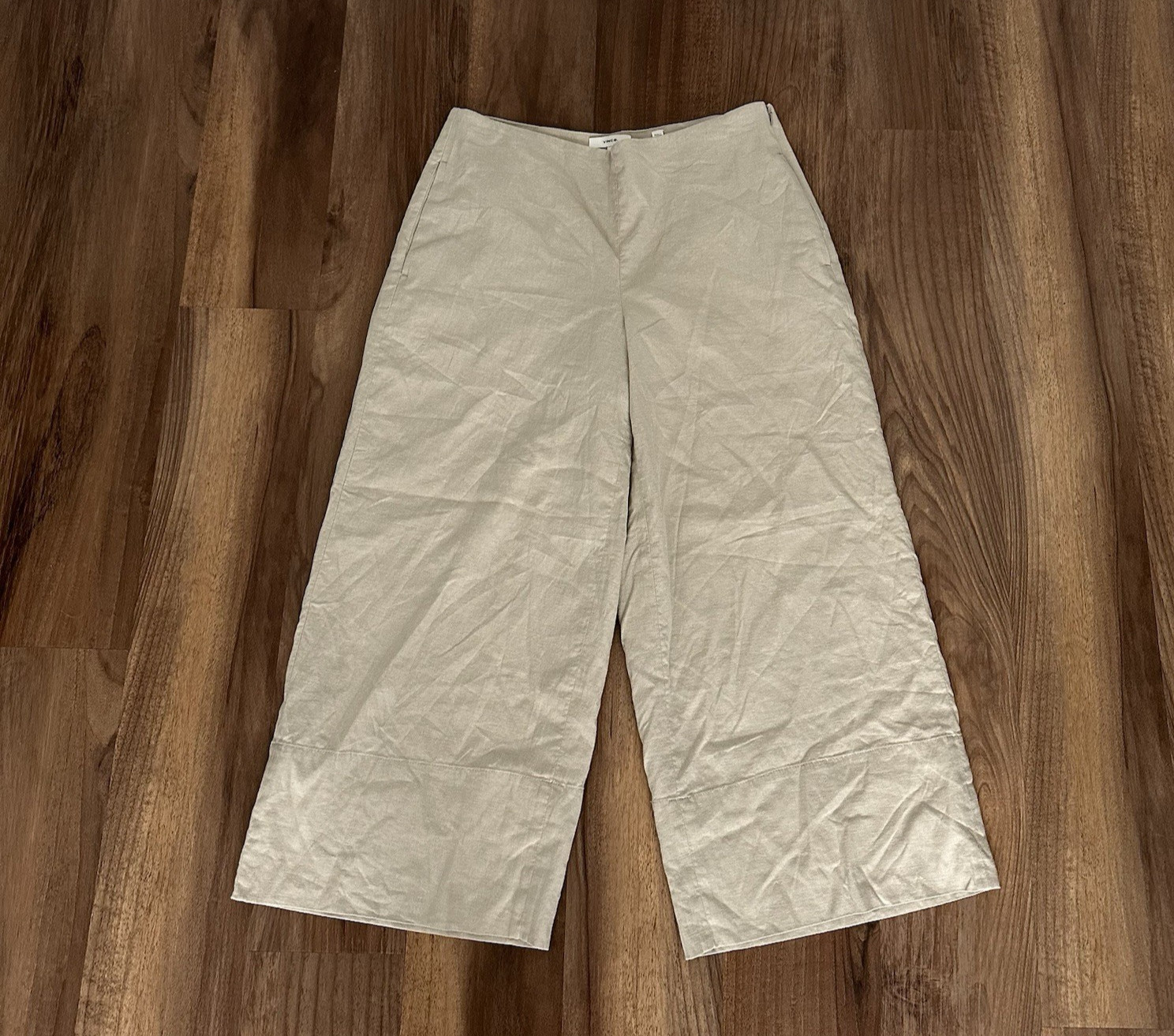 как выглядит Vince Linen Blend Wide Leg Crop Pants Side Zip Beige Career Casual Women
