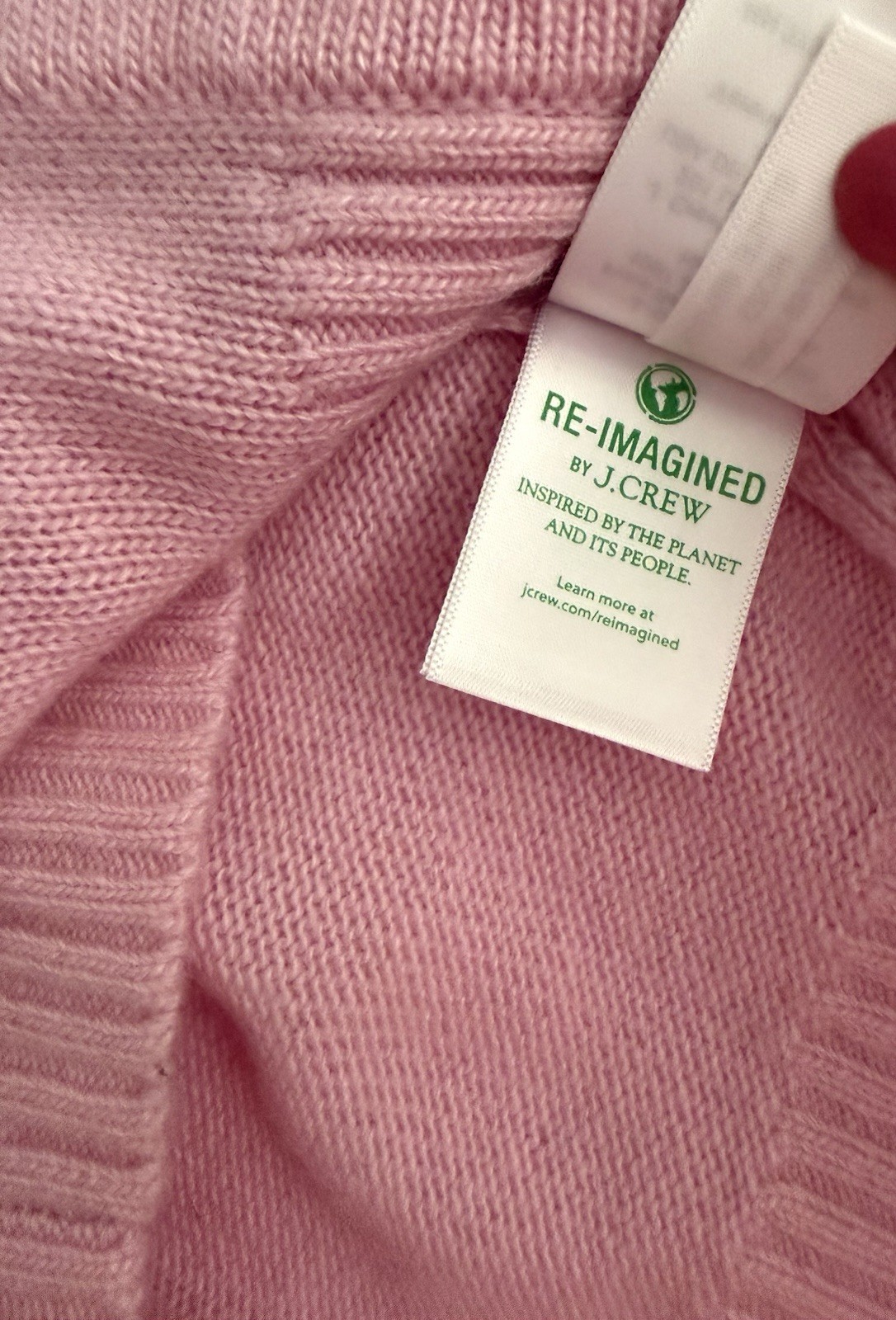 как выглядит J.Crew Feather Trim Cardigan Sweater Wool Cashmere Blend Pink Crystal Buttons S фото