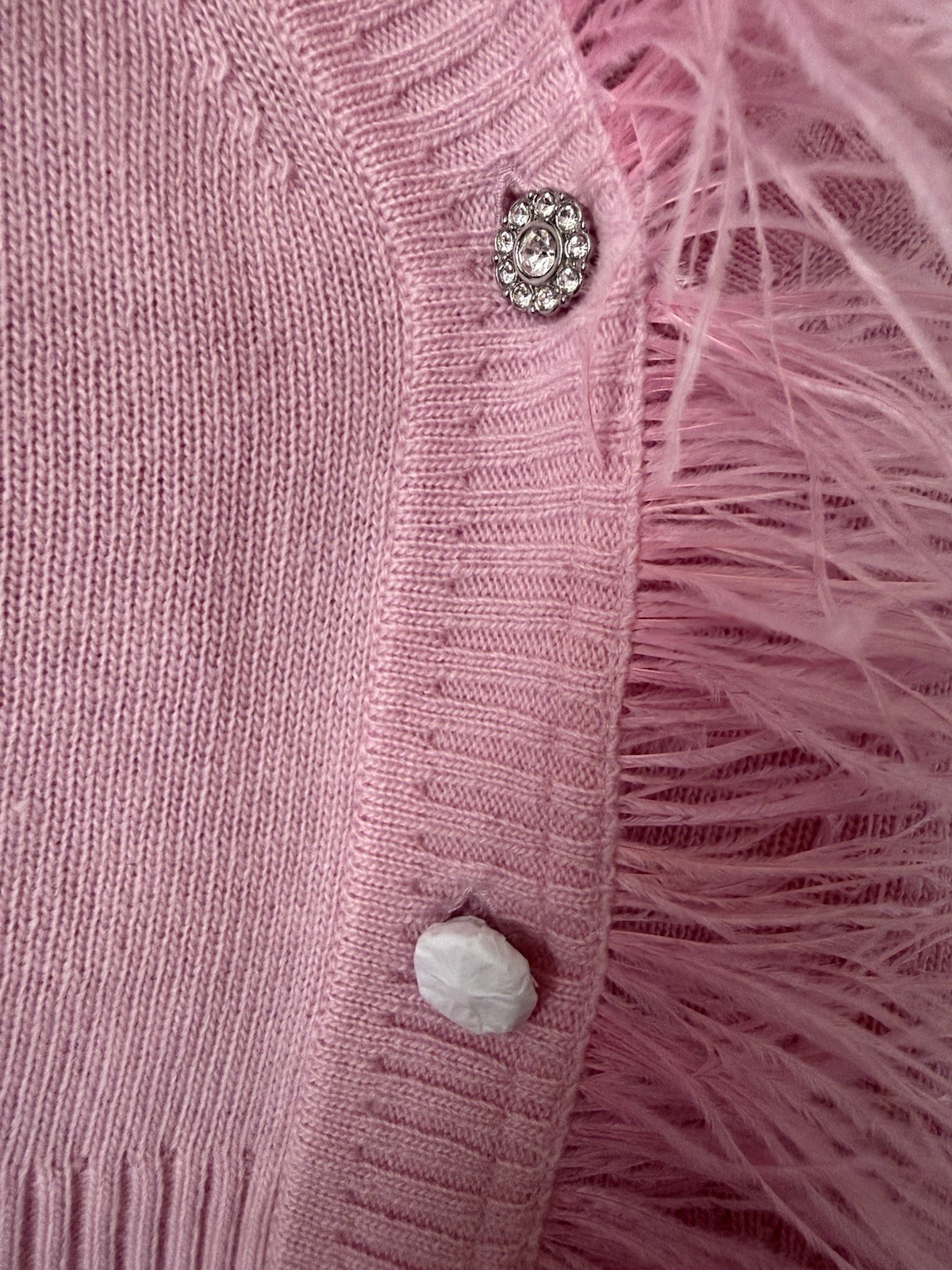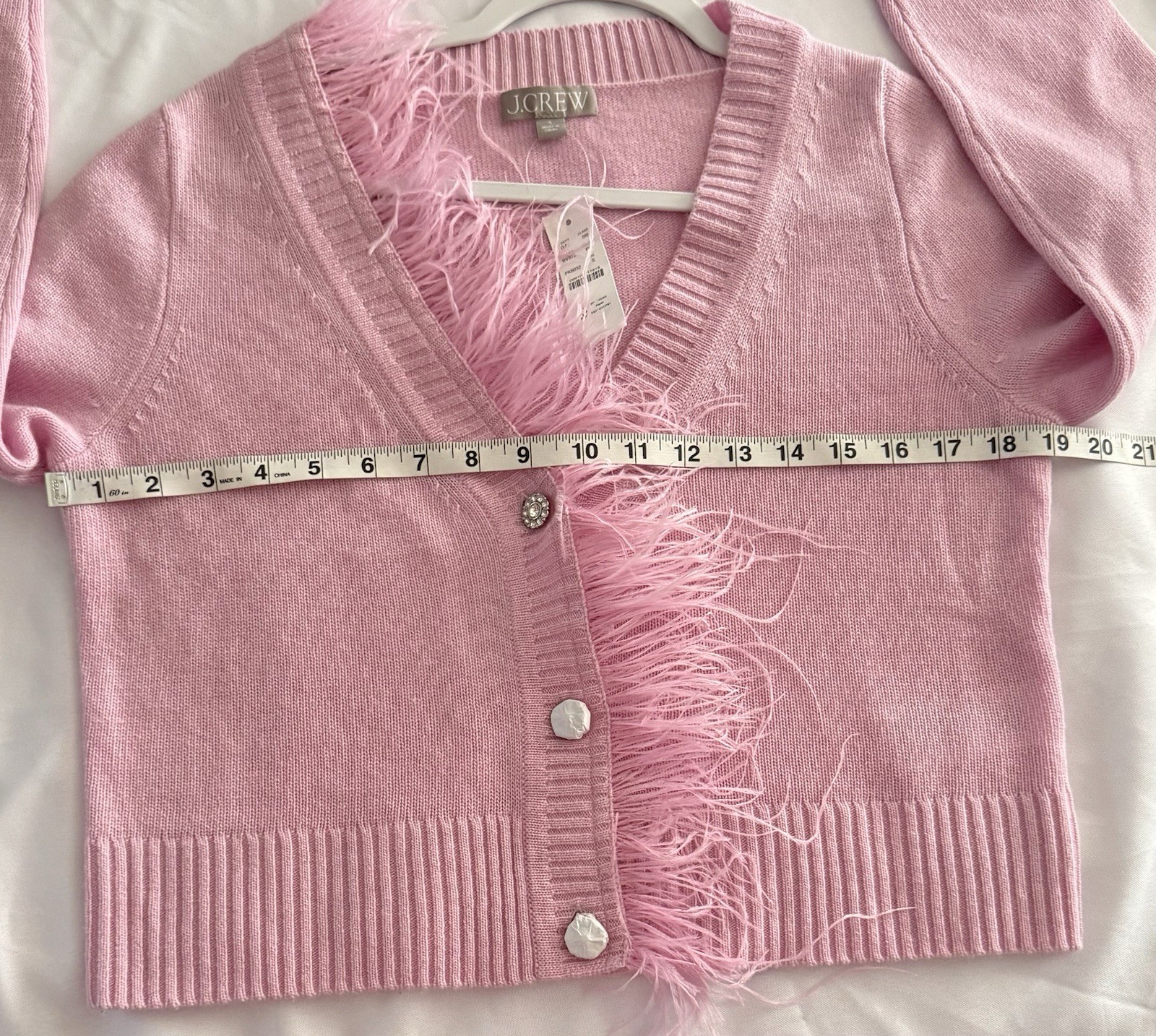 J.Crew Feather Trim Cardigan Sweater Wool Cashmere Blend Pink Crystal Buttons S