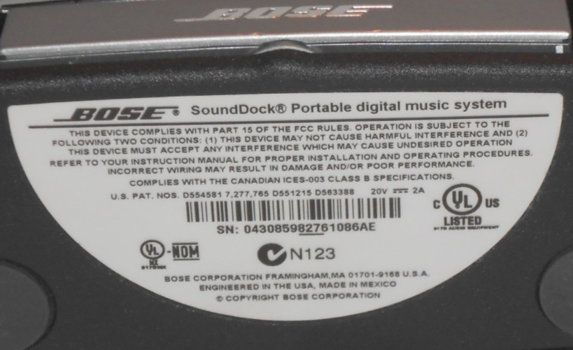 Bose SoundDock Portable Digital Music System N123 AC Adapter Aux Cable WORKS