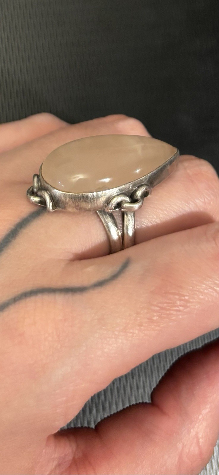 Sterling Silver 925 Teardrop Pink Rose Quartz Ring Size 7 - 12.5 grams.