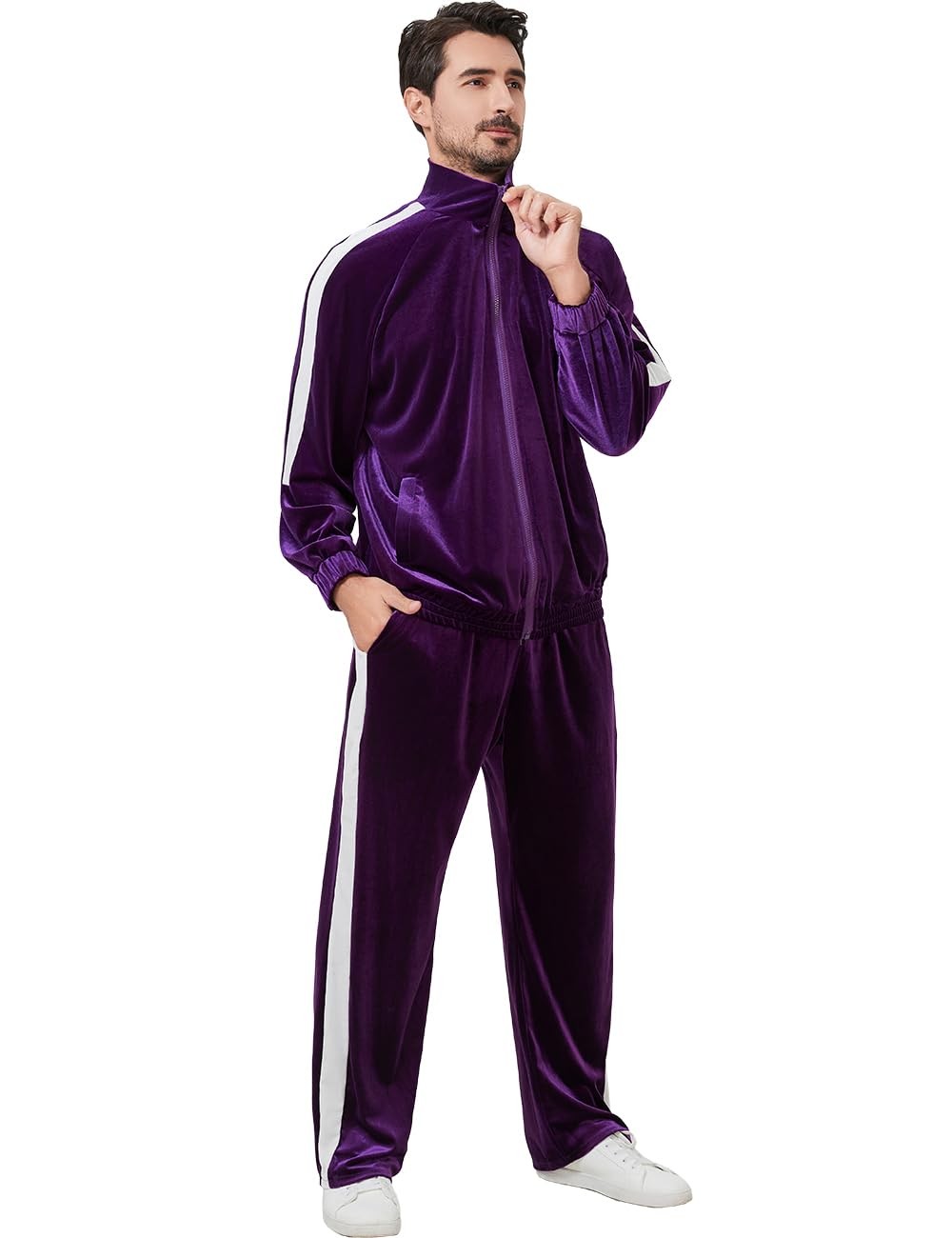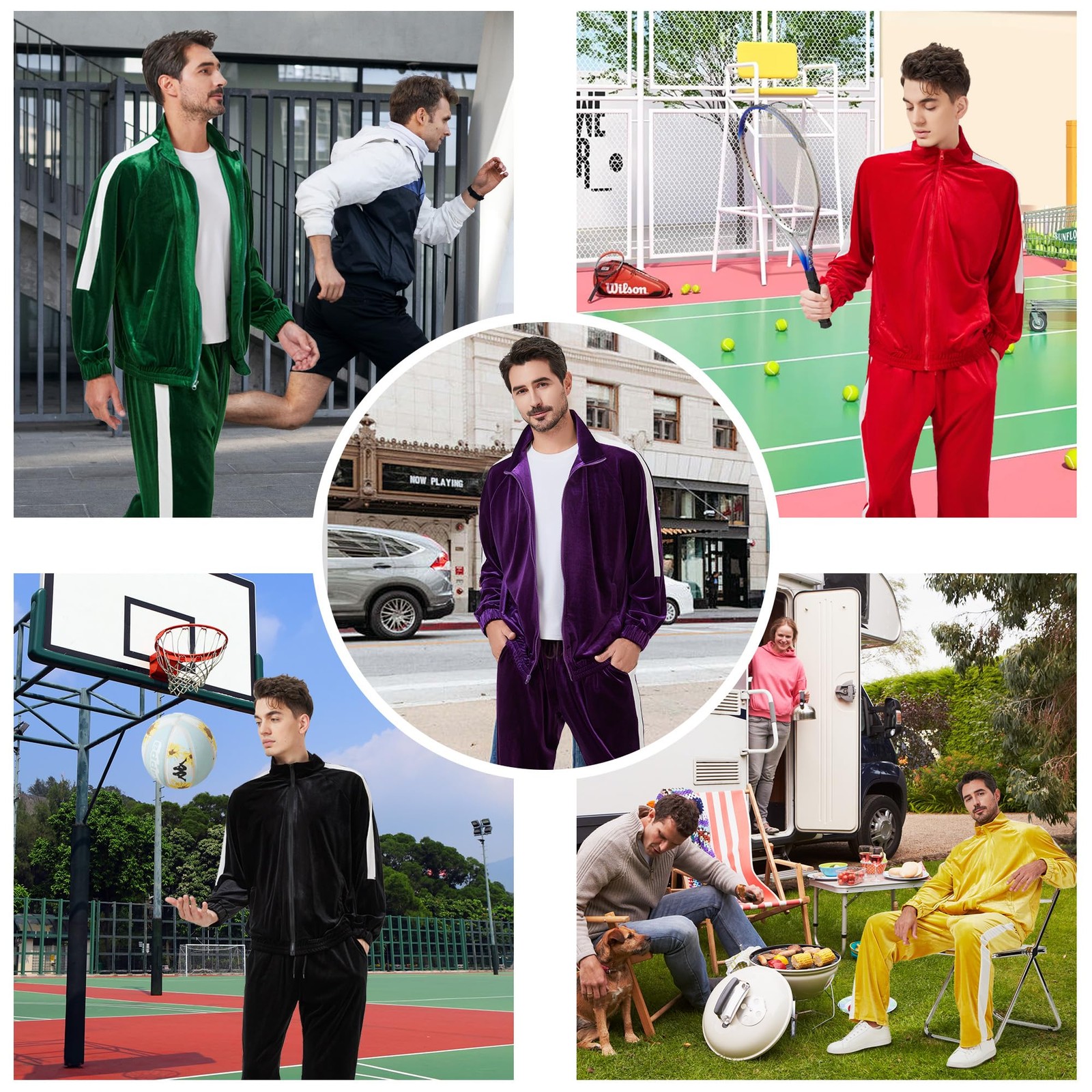 Mens Tracksuit 2 Piece Velour Sweatsuit for Men Casual Full Zip Jogging Suit ...