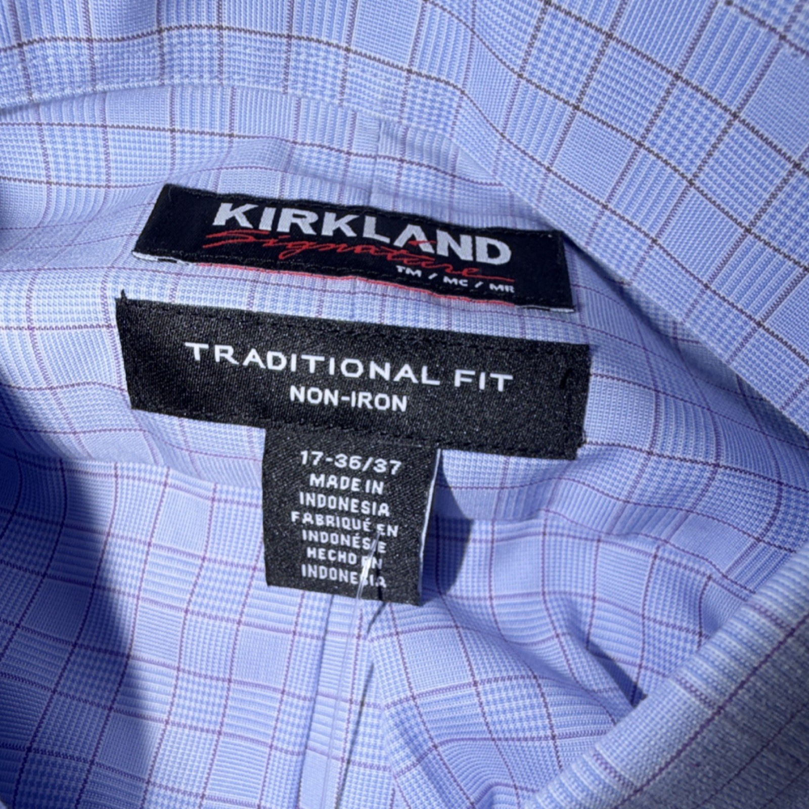 как выглядит Kirkland Signature Mens 17 Traditional Fit Dress Shirt Light Blue Check Non-Ir фото