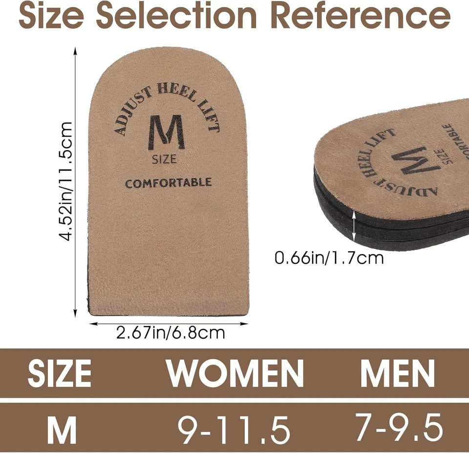 1 Pair Heel Inserts Pads for Shoes Men Women Height Increase Boosters Brown