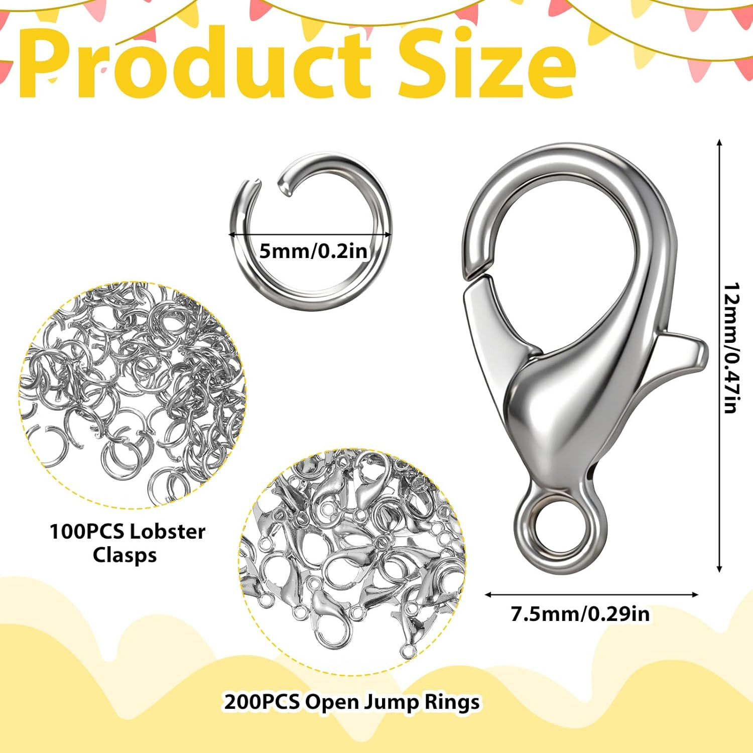 300PCS Stainless Steel Lobster Claw Clasps for Necklace Bracelet Jewelry Making,