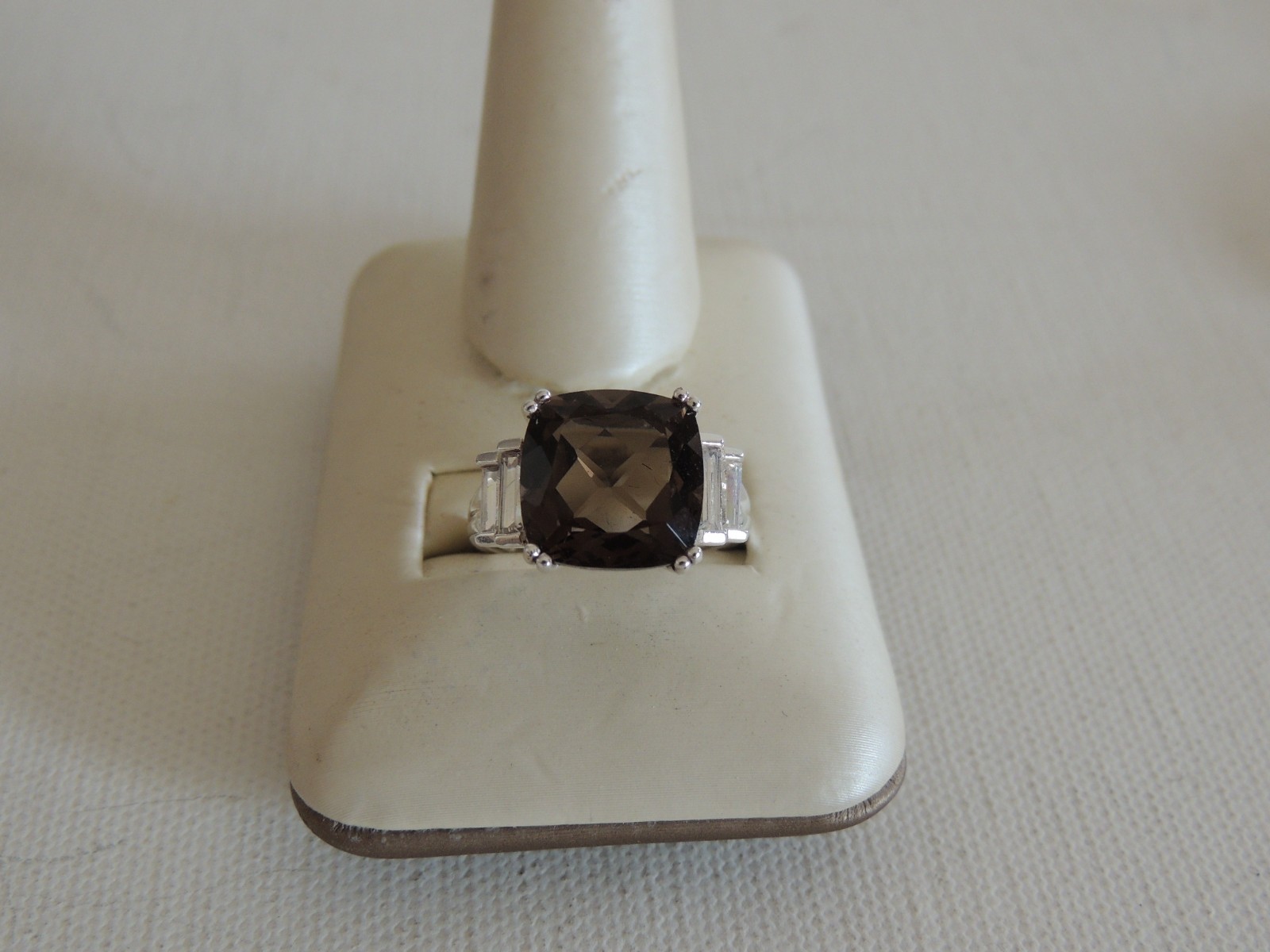 как выглядит 925 STERLING RING W/ 2 CTW SMOKEY TOPAZ SIDE MOUNTED CZ SZ 7.5 фото