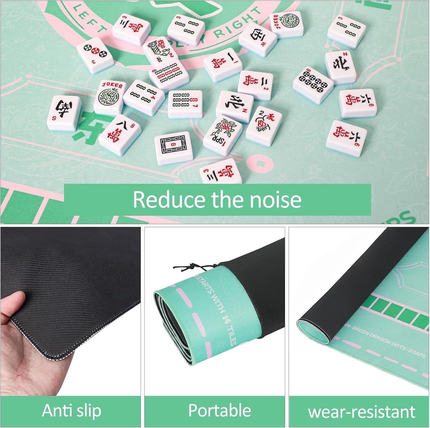 Green Mahjong Learning Mat 33 x 33 with Black Carrying Bag, Anti-Slip, Nois...