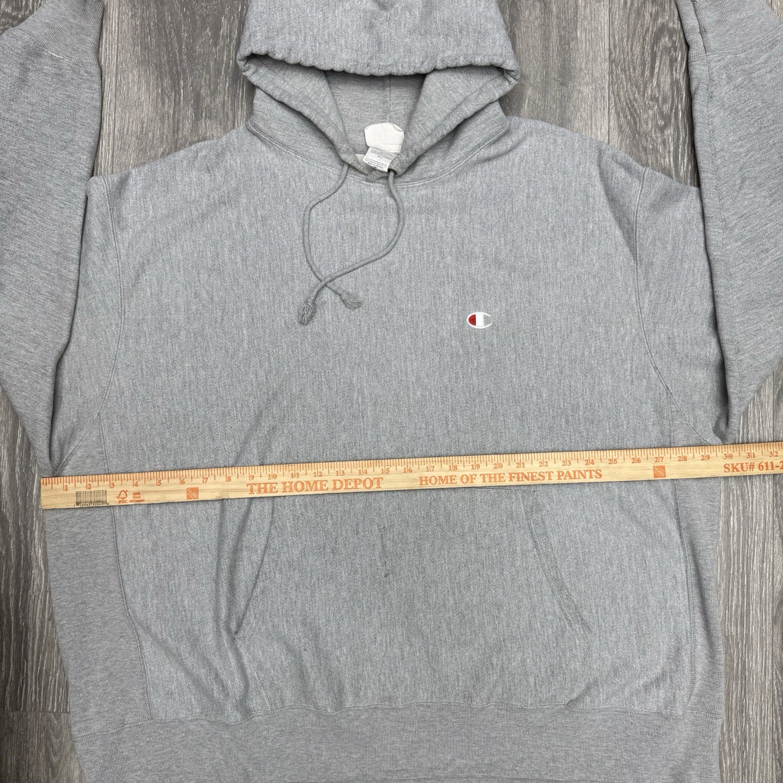 как выглядит Champion Reverse Weave Heather Grey Fleece Hoodie Sweatshirt Mens size 3XL фото