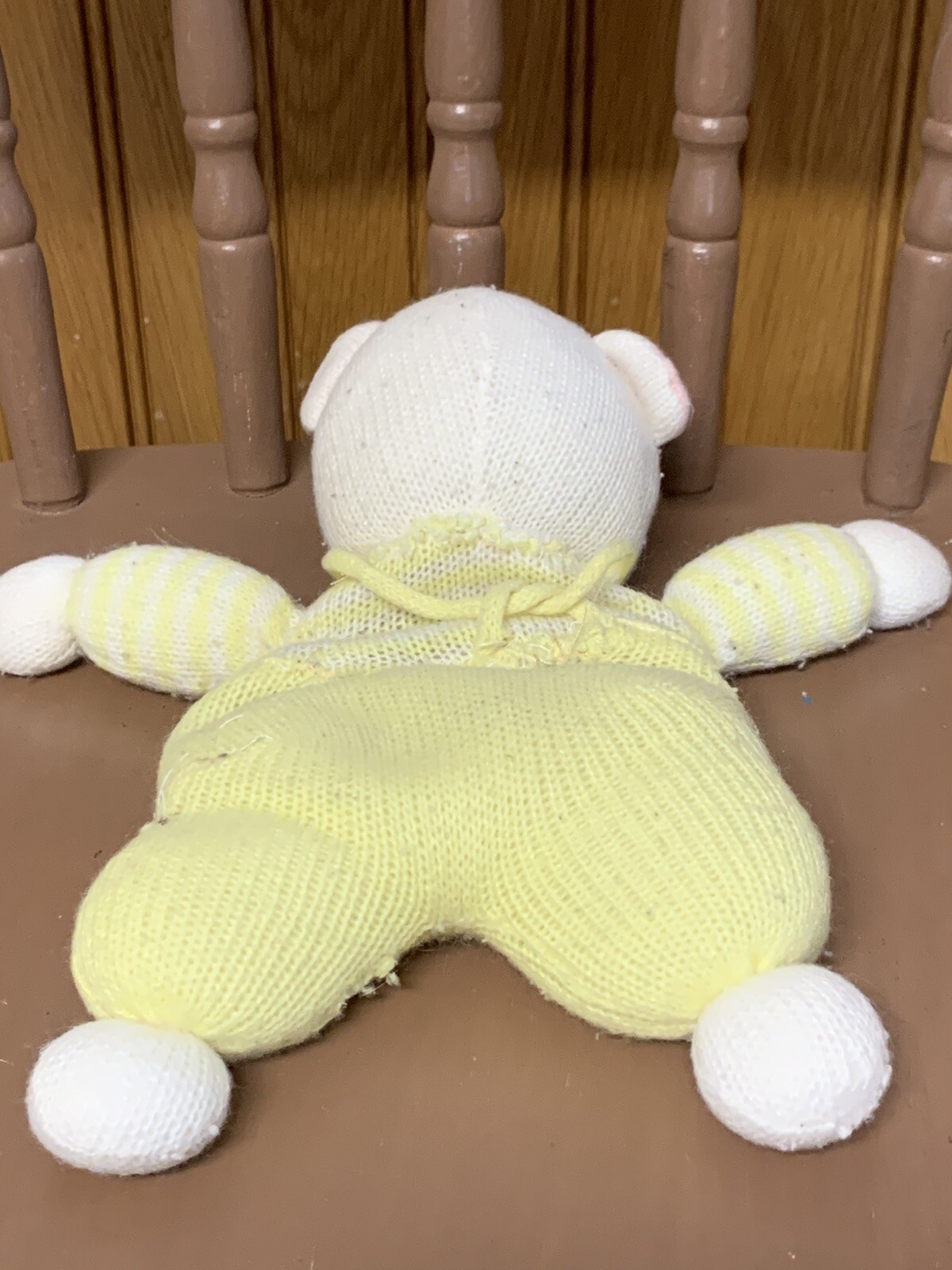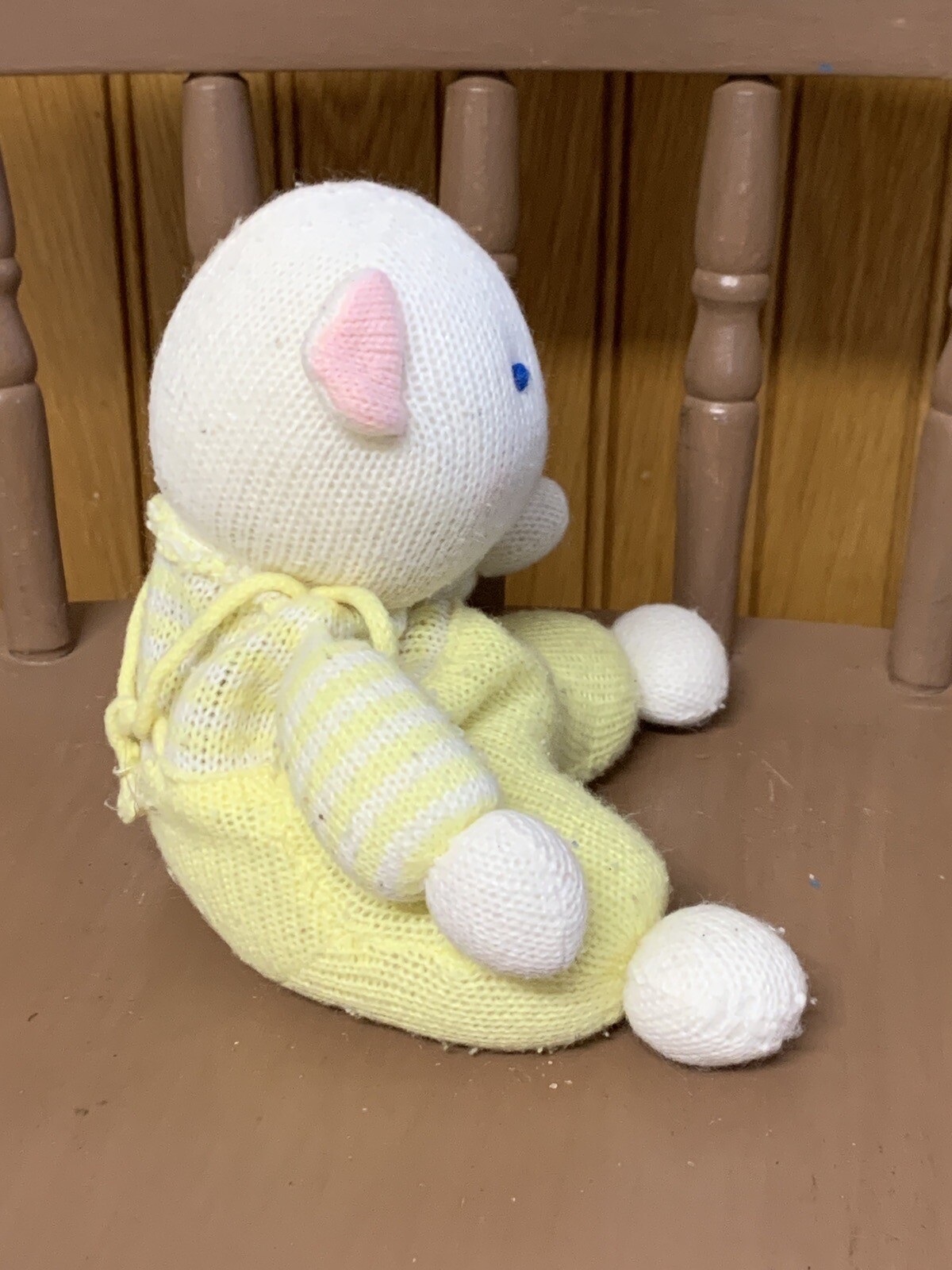как выглядит 11" Vintage EDEN White Yellow Knit Teddy Bear Baby Stuffed Plush READ фото