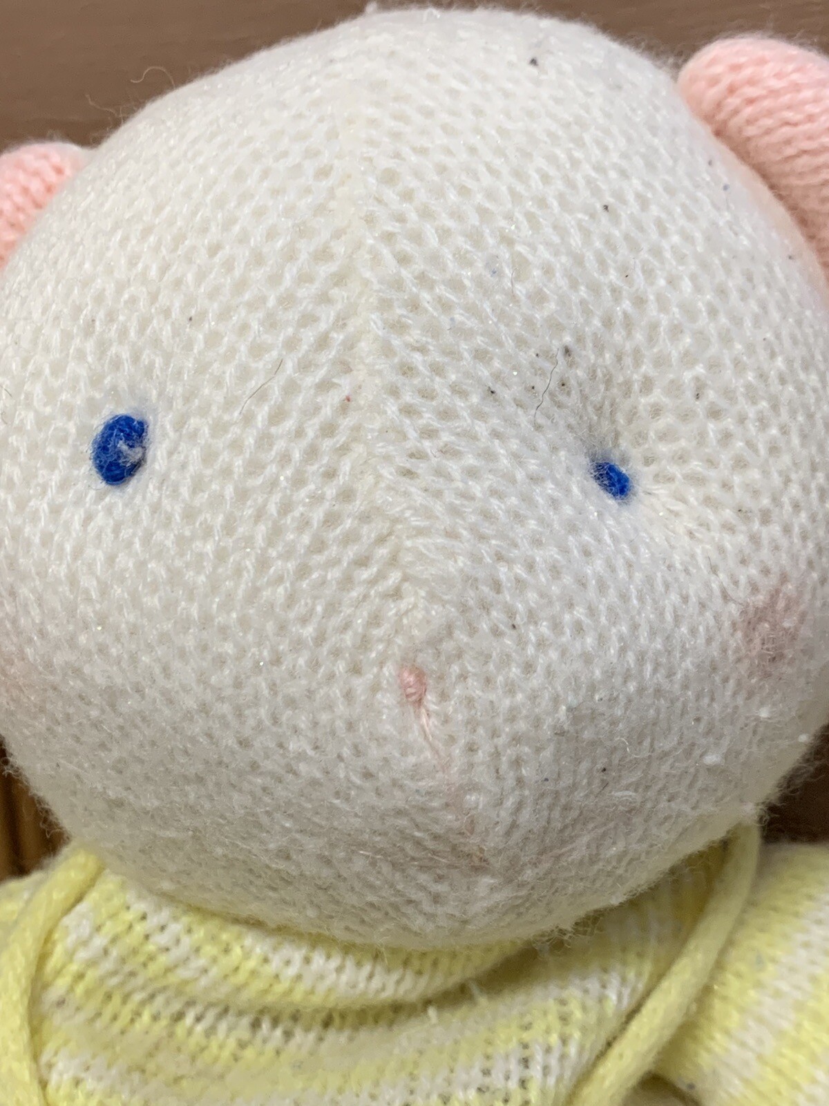 11 Vintage EDEN White Yellow Knit Teddy Bear Baby Stuffed Plush READ