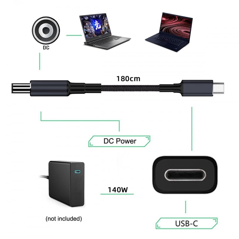 CY Cable Type C USB-C Input to 20V DC 5.5 2.1mm 5.5X2.1mm, Black 5521