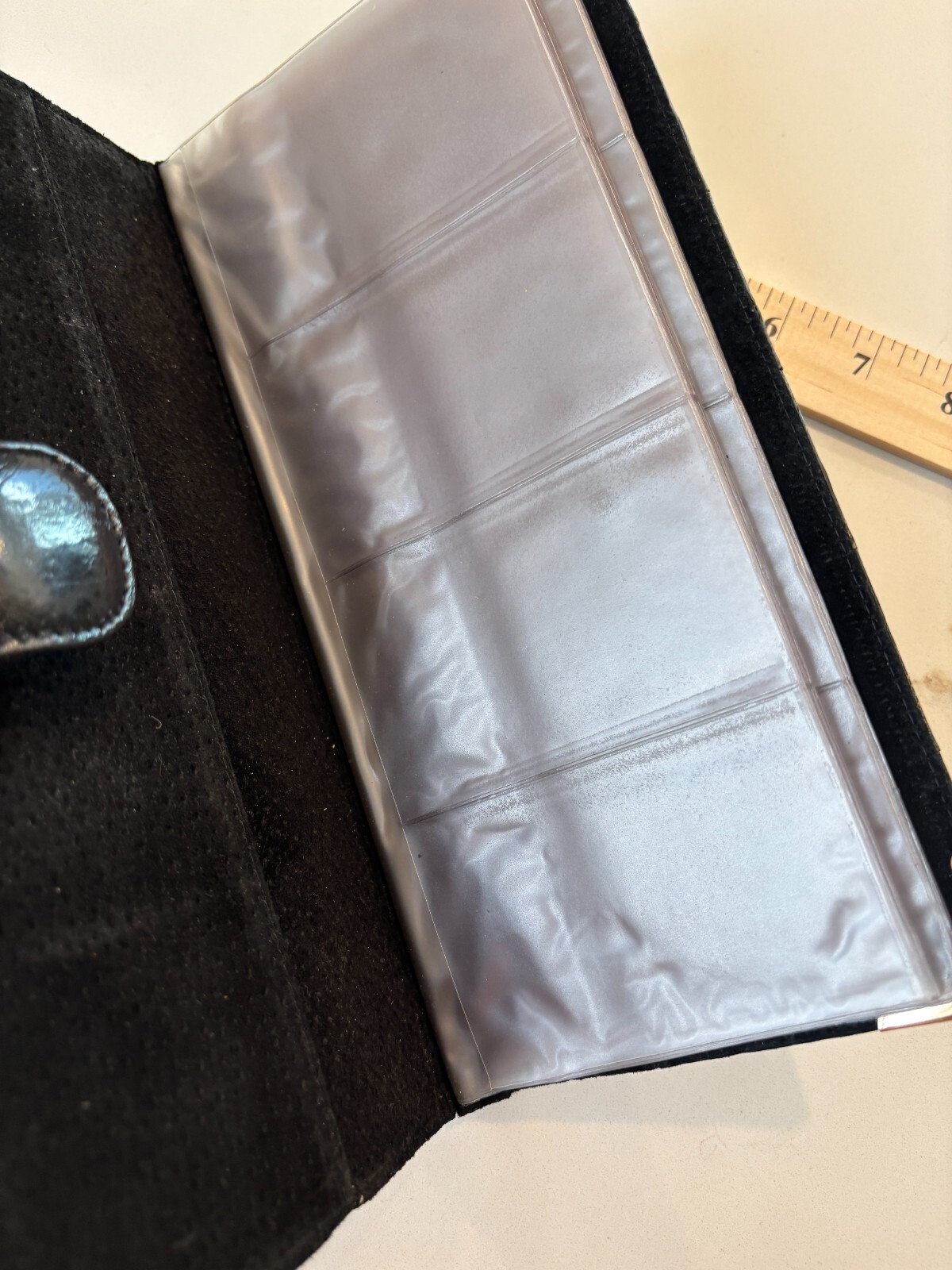 Genuine eel skin soft credit/business card holder wallet w/snap button holds 80