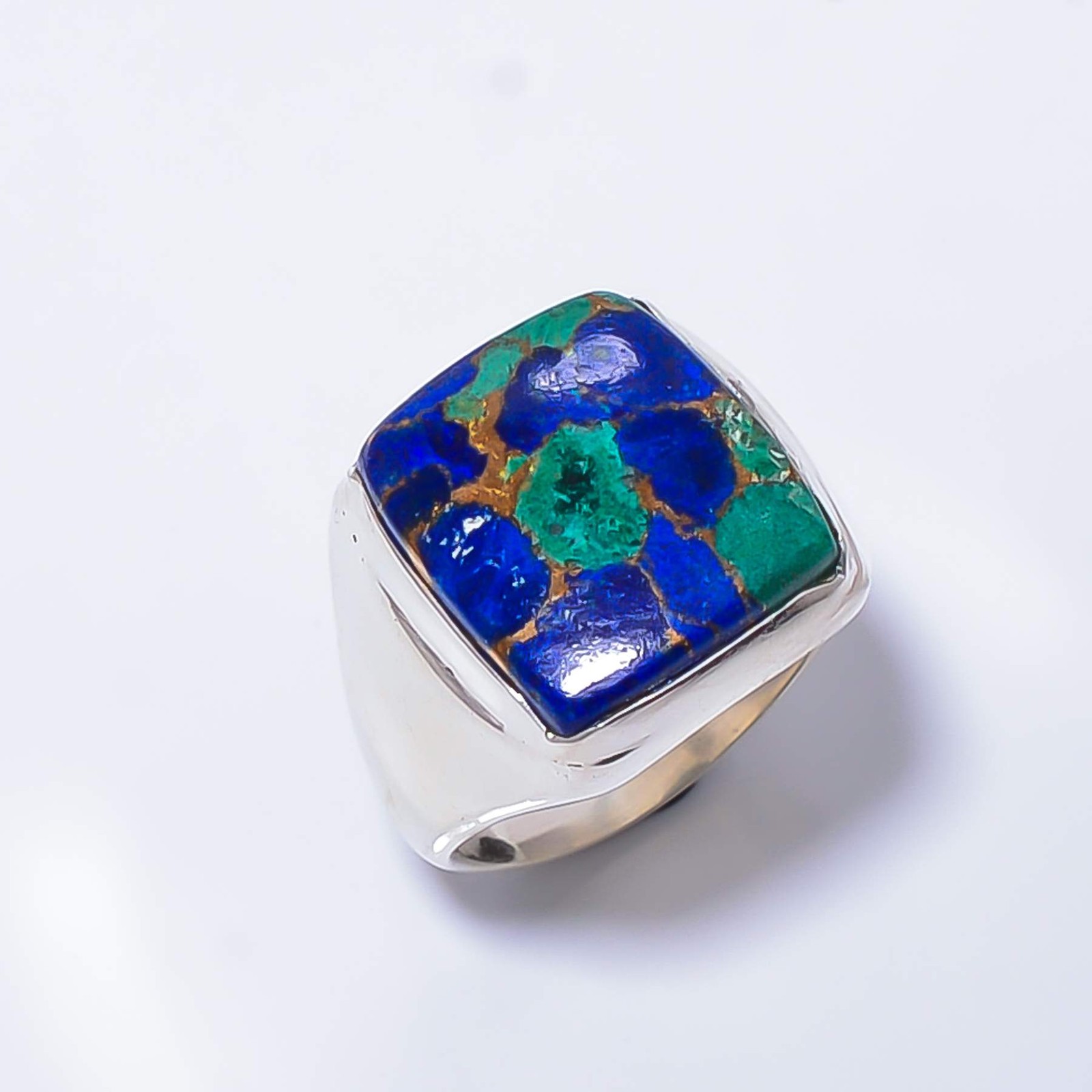 как выглядит Copper Azurite Gemstone 925 Sterling Silver Solitaire Handmade Ring s.8 A353 фото