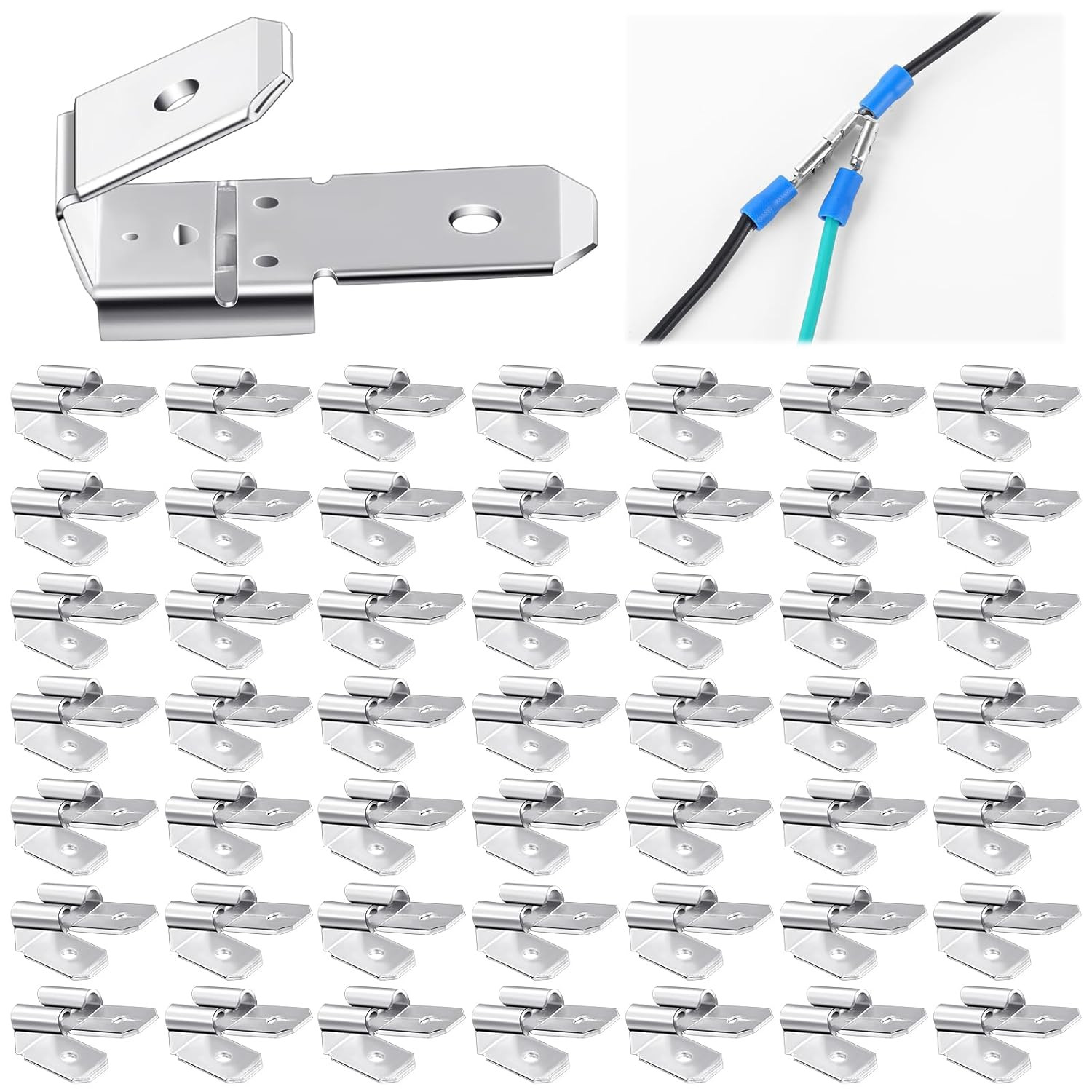 как выглядит 50 Pcs Double Piggyback Spade Connectors, Male Female Adapter Crimp Terminals фото