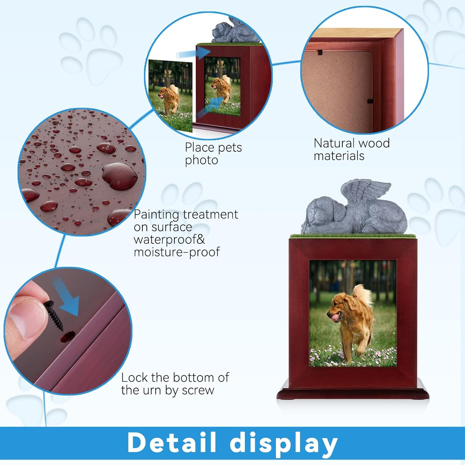 • Pet Cremation Urn for Large Dogs, Ashes Photo Box, Wood Keepsake Memorial Urn