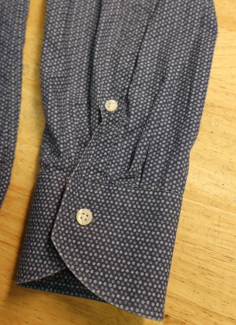 как выглядит Mens Canali Button Front Dress Shirt Size 17 1/2 Blue White Geometric Made in It фото