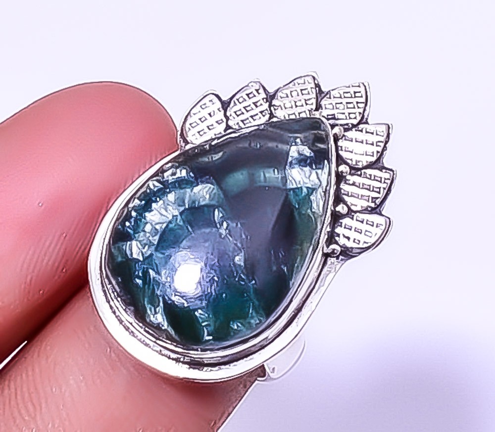 как выглядит Seraphinite Designer 925 Sterling Silver Handmade Ring Adjustable R43 A377 фото
