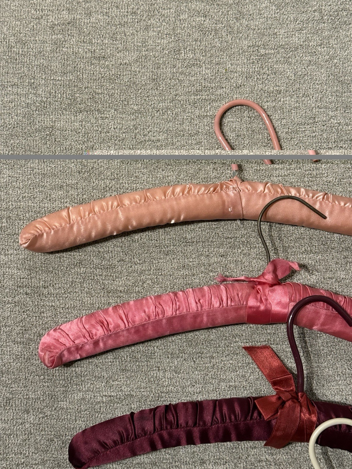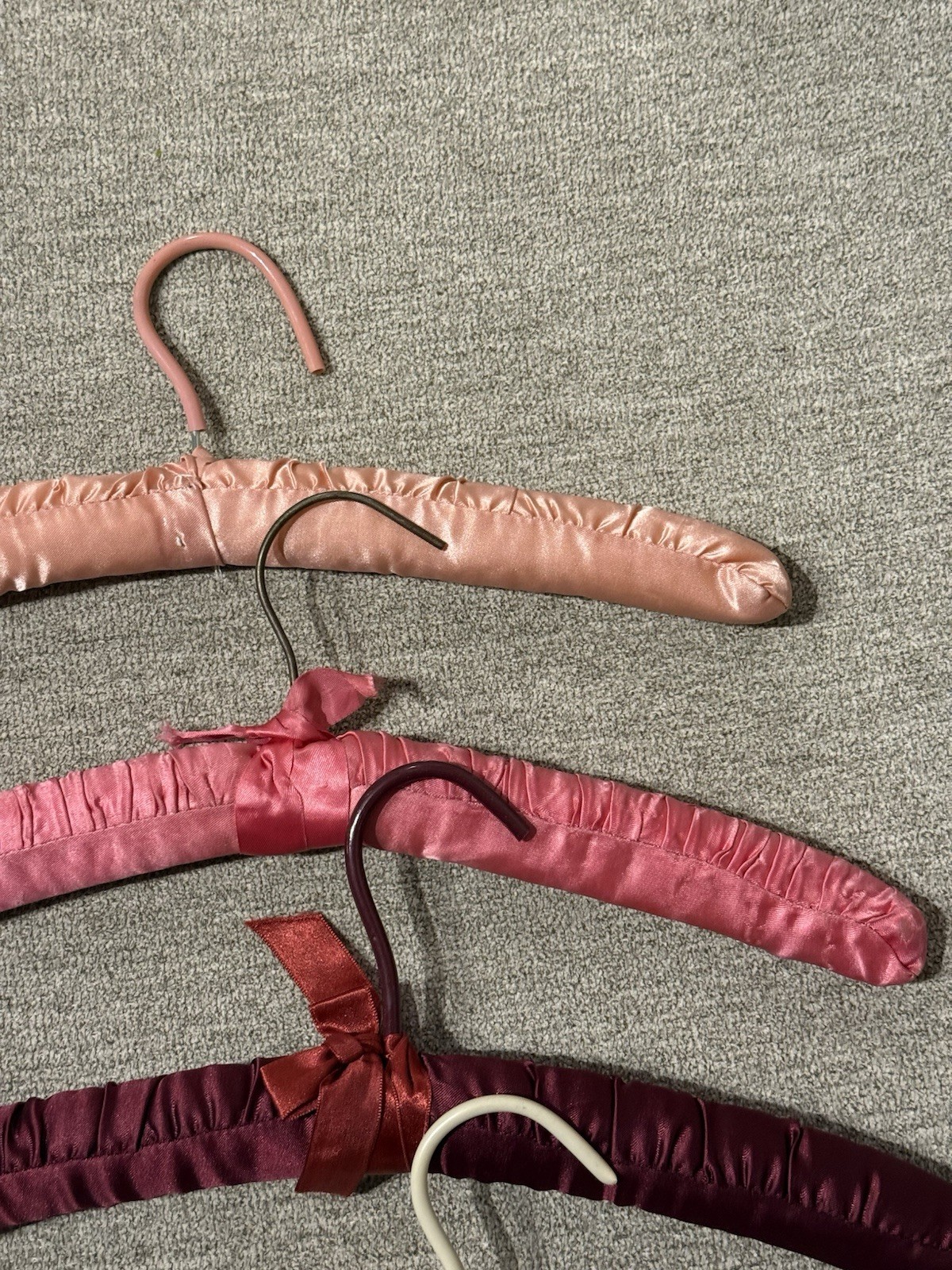 Set of 4 Vintage Satin Padded Hangers in Various Shades of Pink