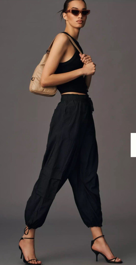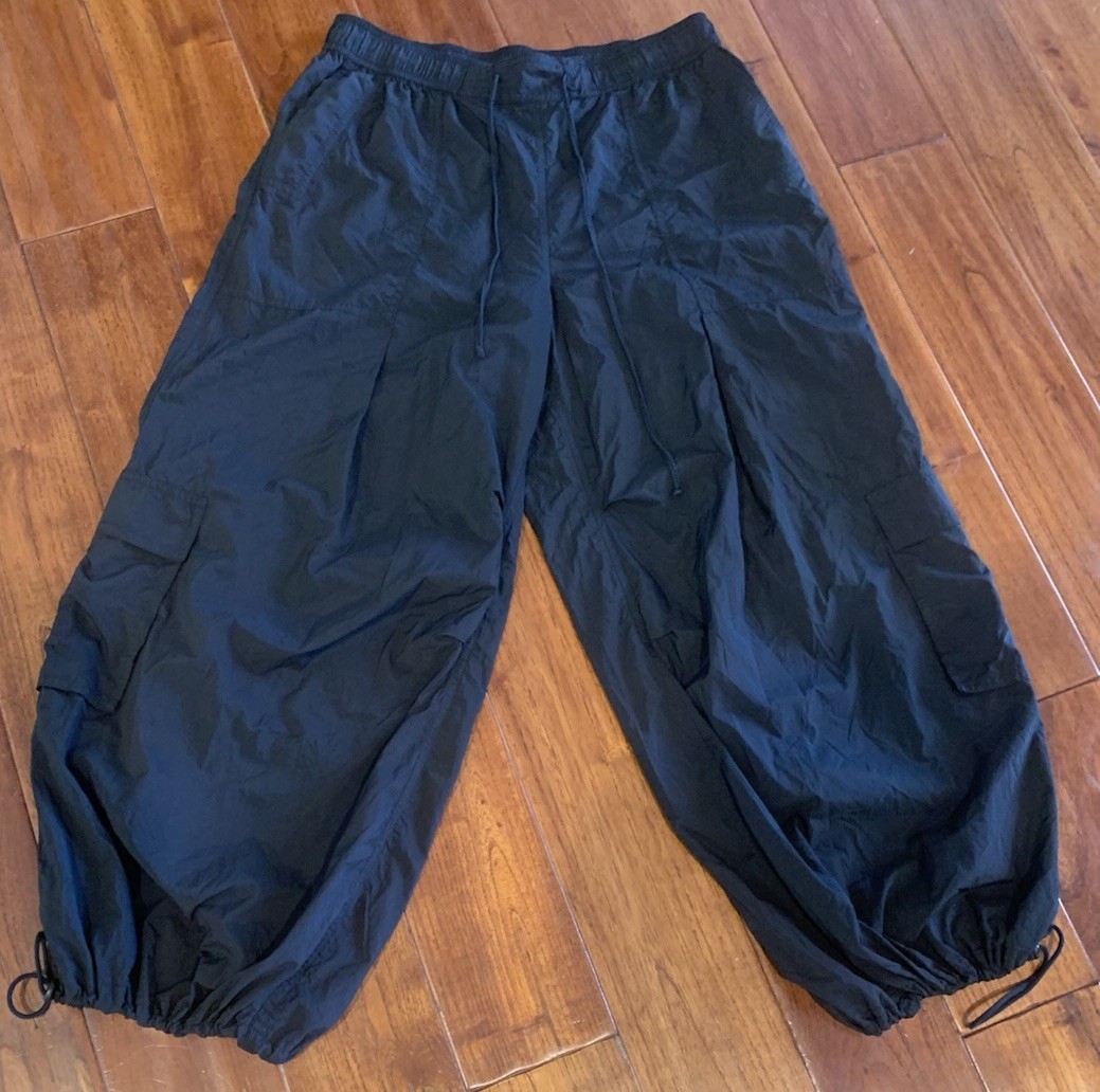 как выглядит Daily Practice Antropologie Base Jump Parachute Pants Womens M Black Cargo Baggy фото