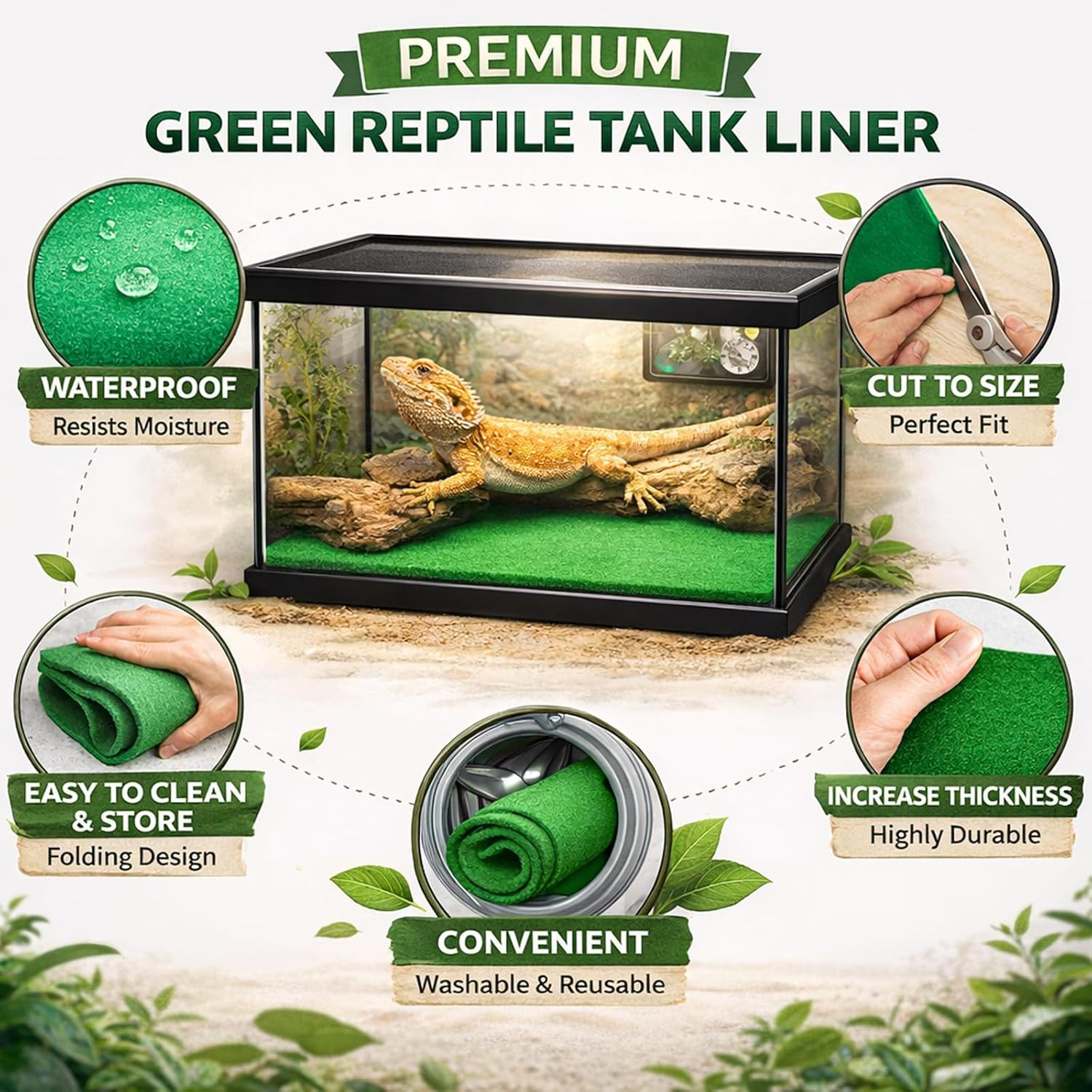 как выглядит Large Reptile Carpet Terrarium Liner 47" X 24" Substrate Mat Green фото