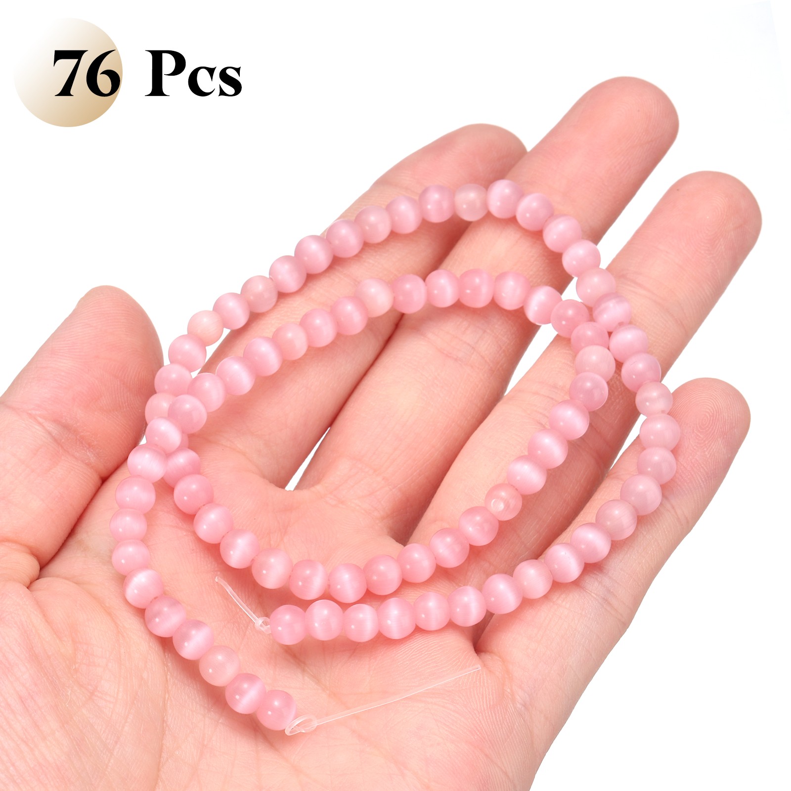 как выглядит 76pcs Pink Cats Eye Stone Beads 5mm Round Crystal Loose Bead фото